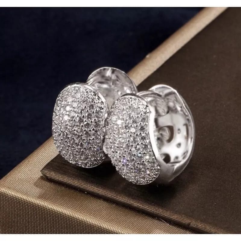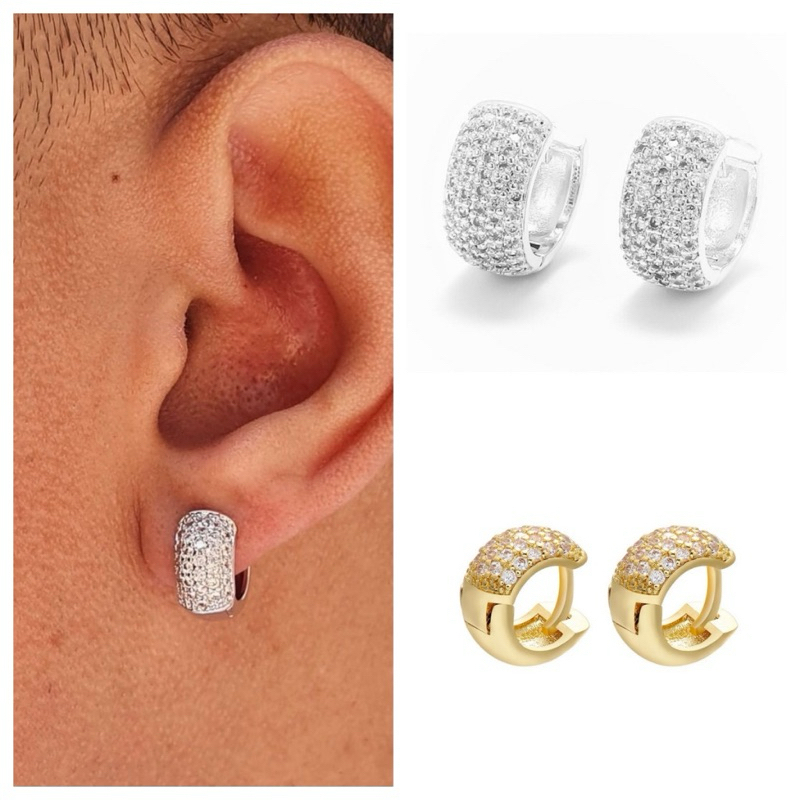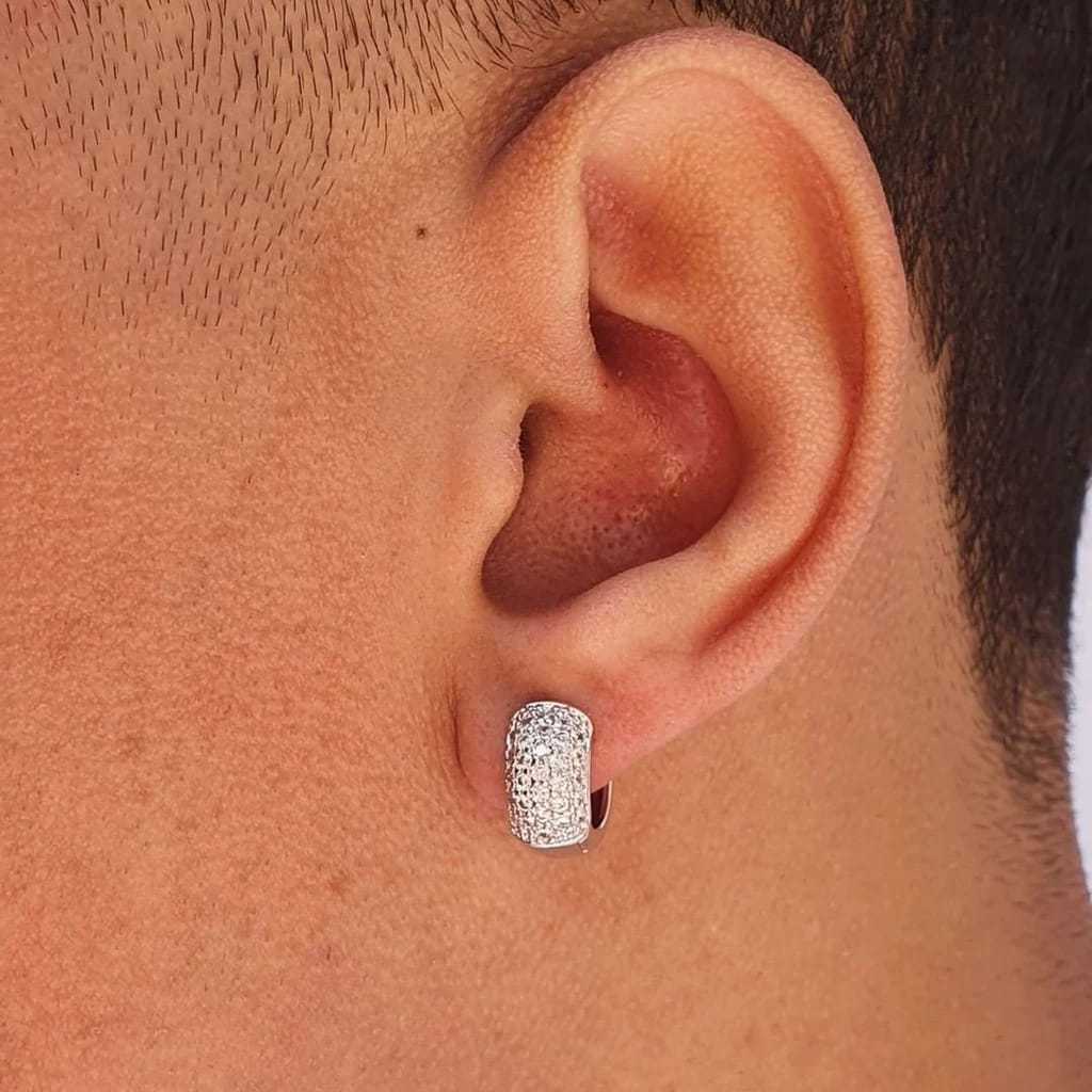 Brinco argola prata cravejada Neymar zircônia masculino par de brincos