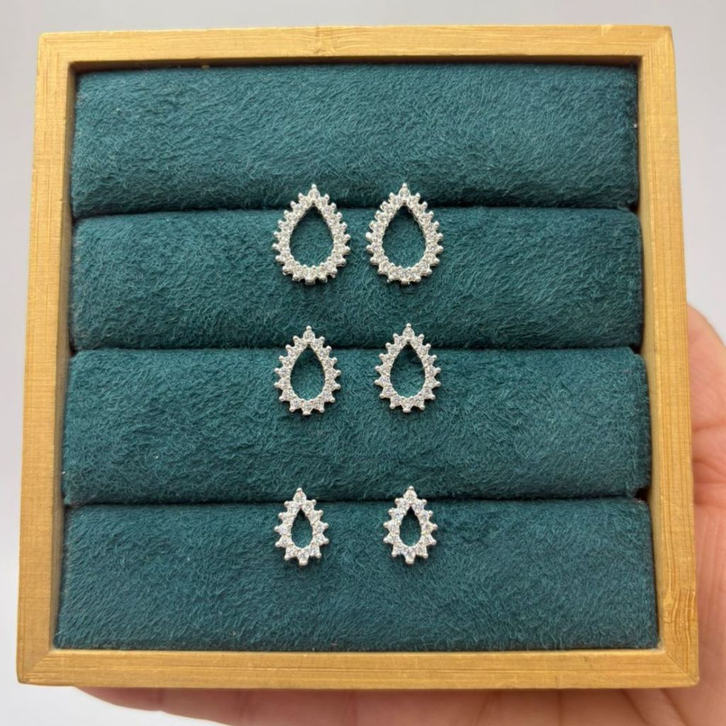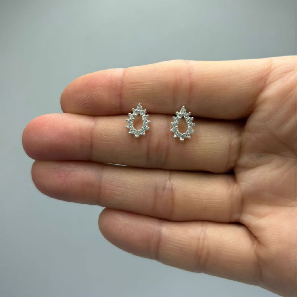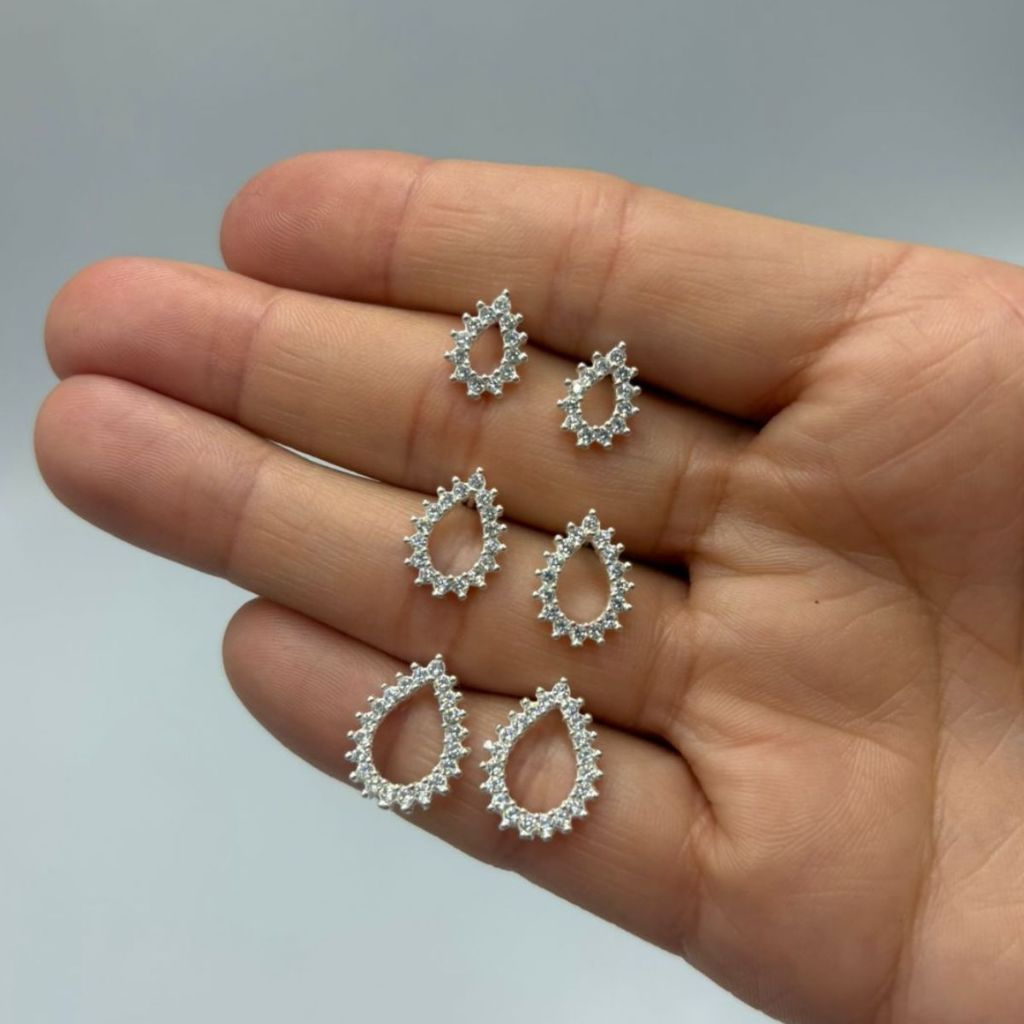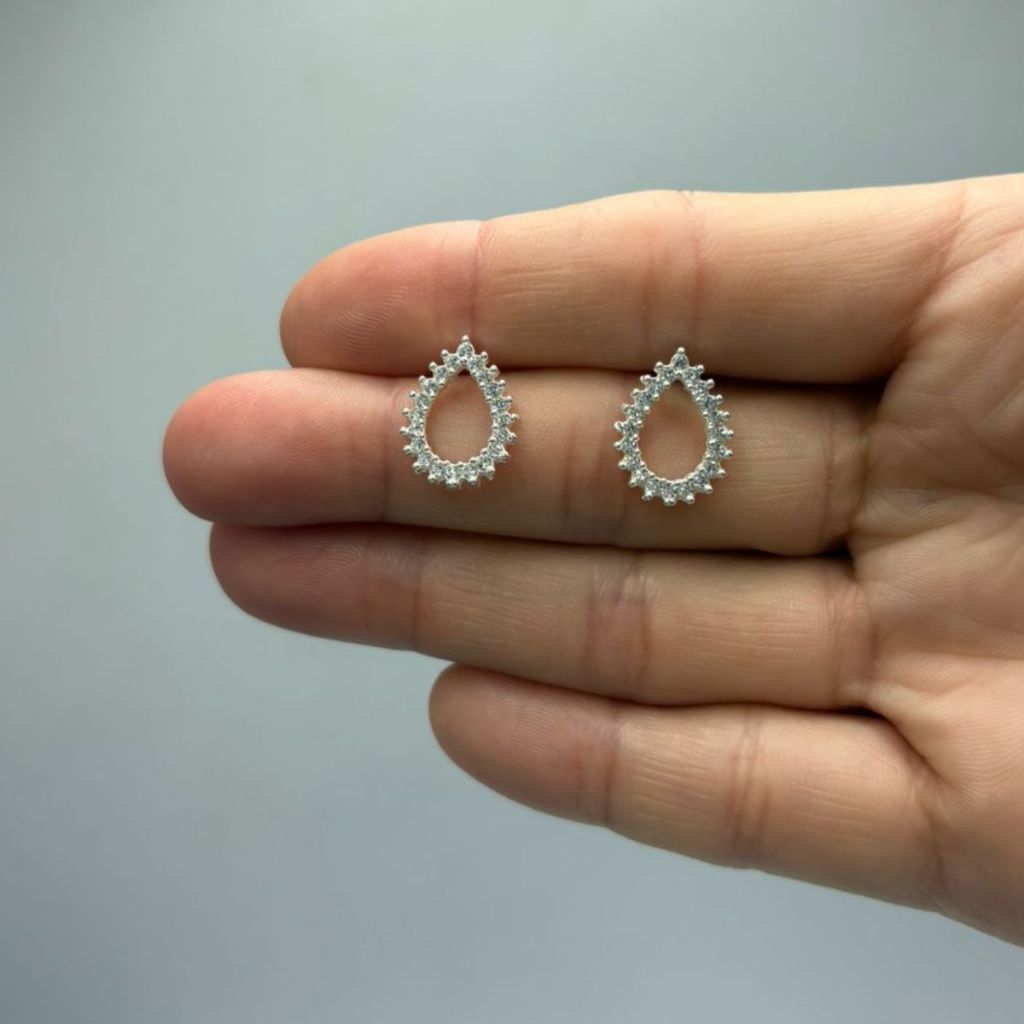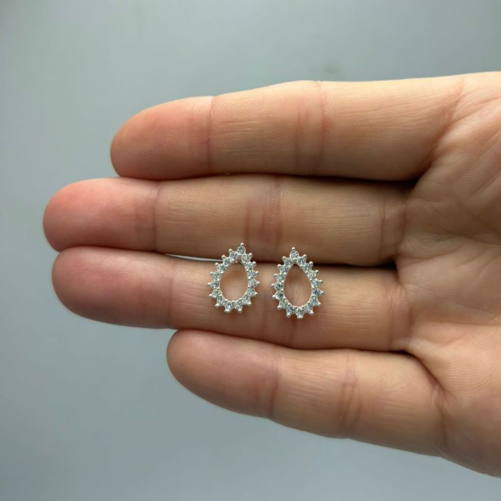 Brinco de Prata 925 Gota Vazada com Zircônias