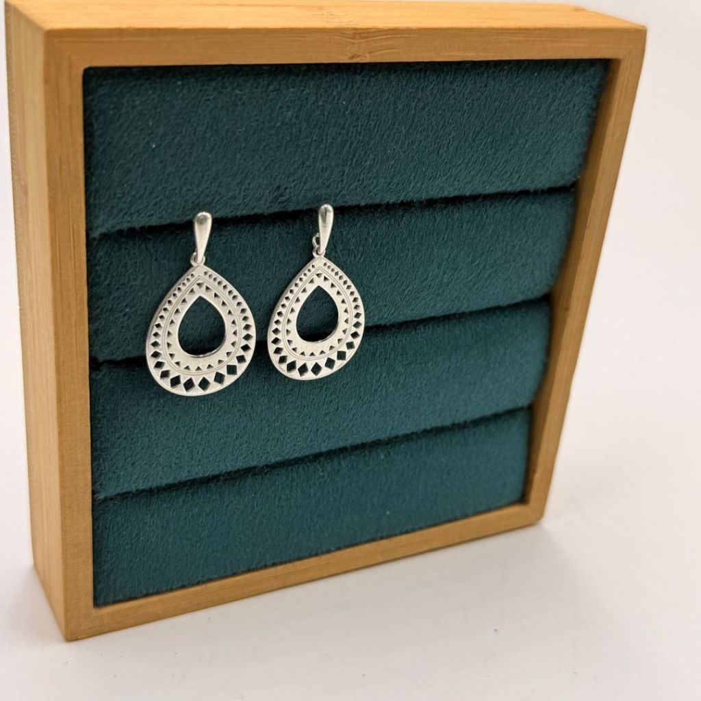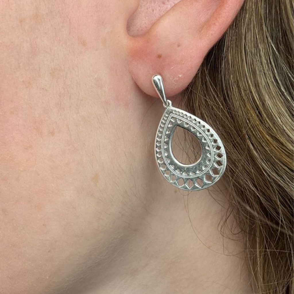 Brinco de Prata 925 Gota Vazada e Detalhada