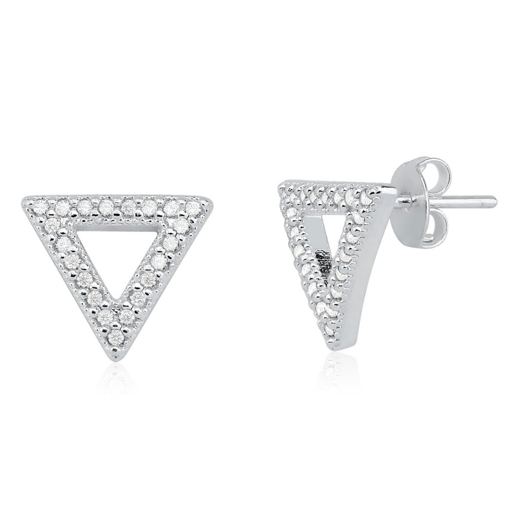 Brinco de Prata 925 Triângulo com Zircônias Cravejadas
