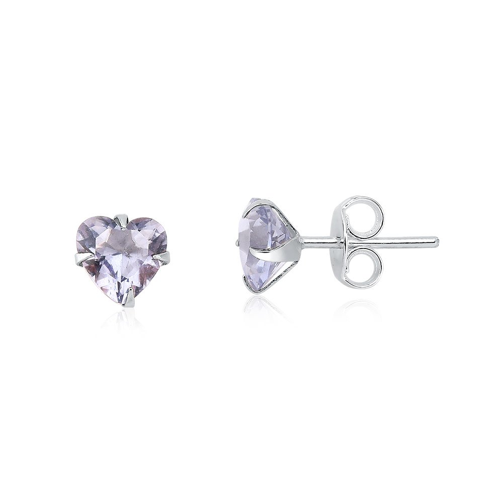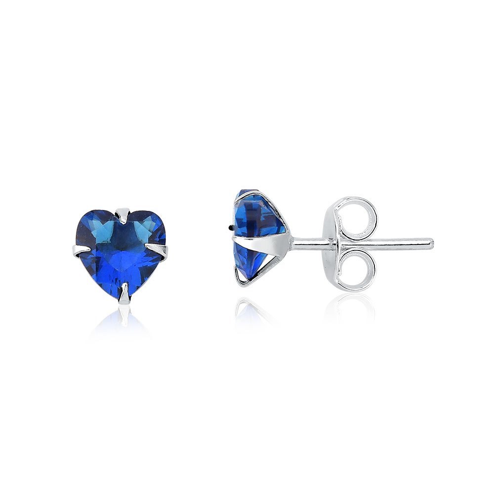 Brinco de prata 925 coração 5mm zircônia colorido Aqua Joias