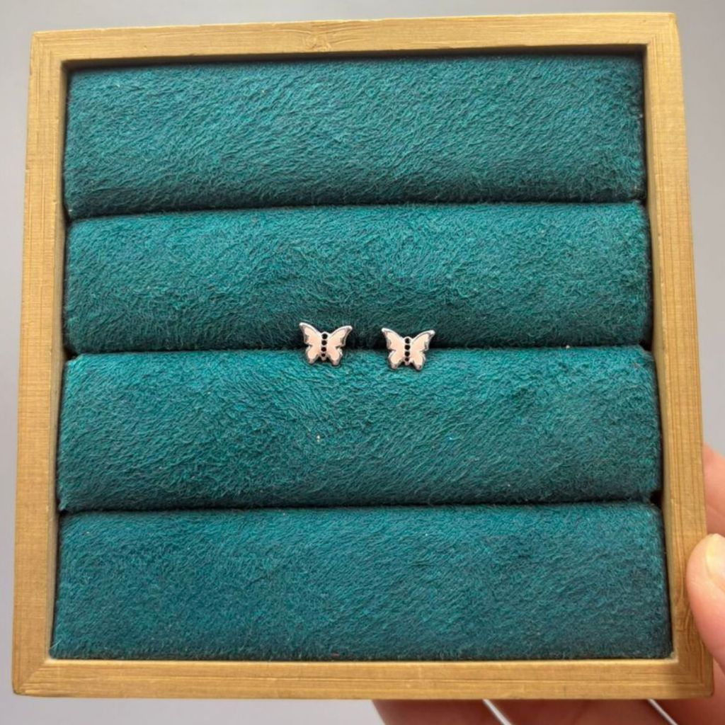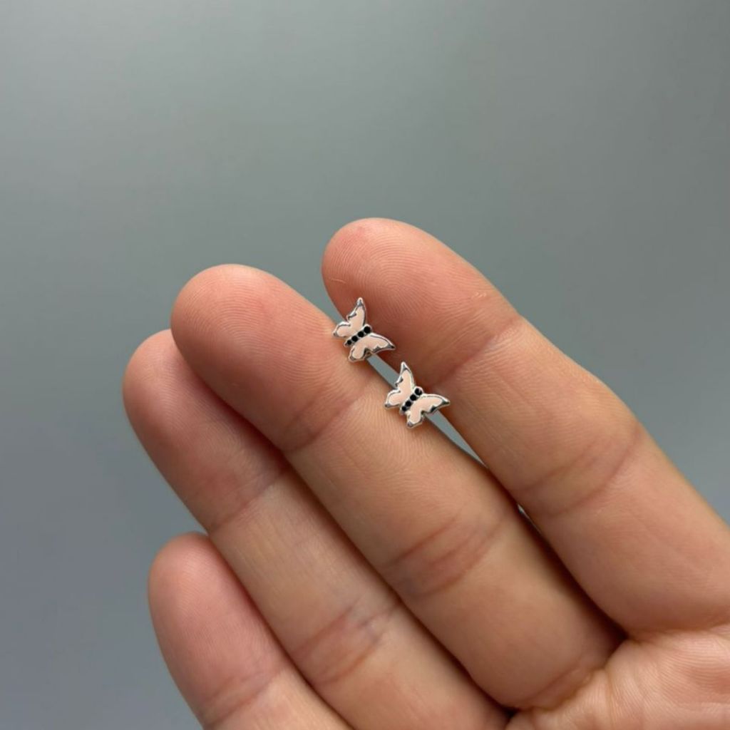 Brinco infantil prata 925 borboleta rosa