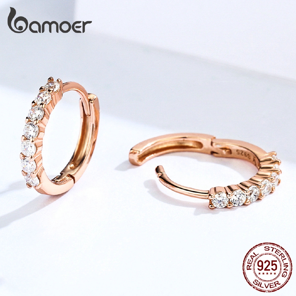 Brincos Argola De Bamoer De Cristal 100 % De Prata Esterlina 925 SCE351
