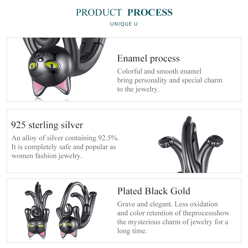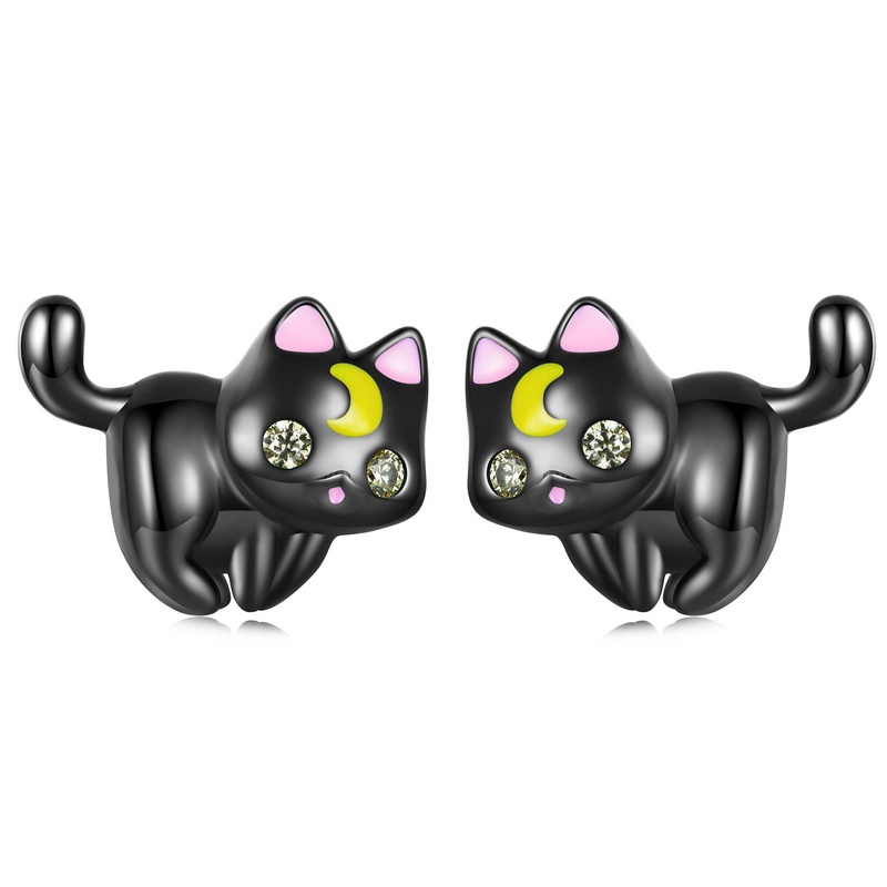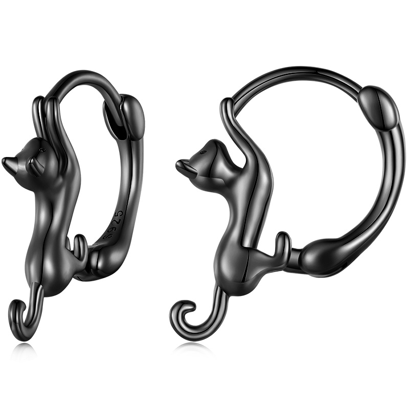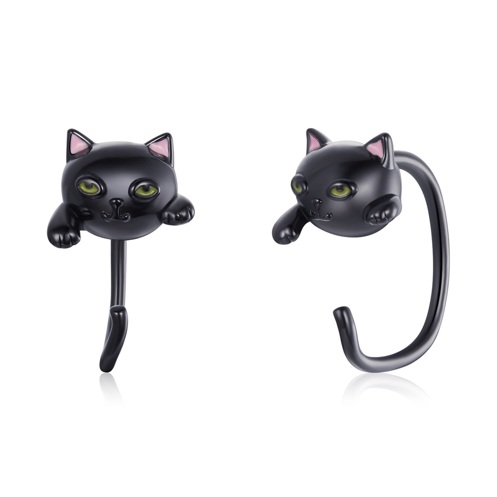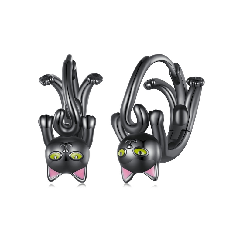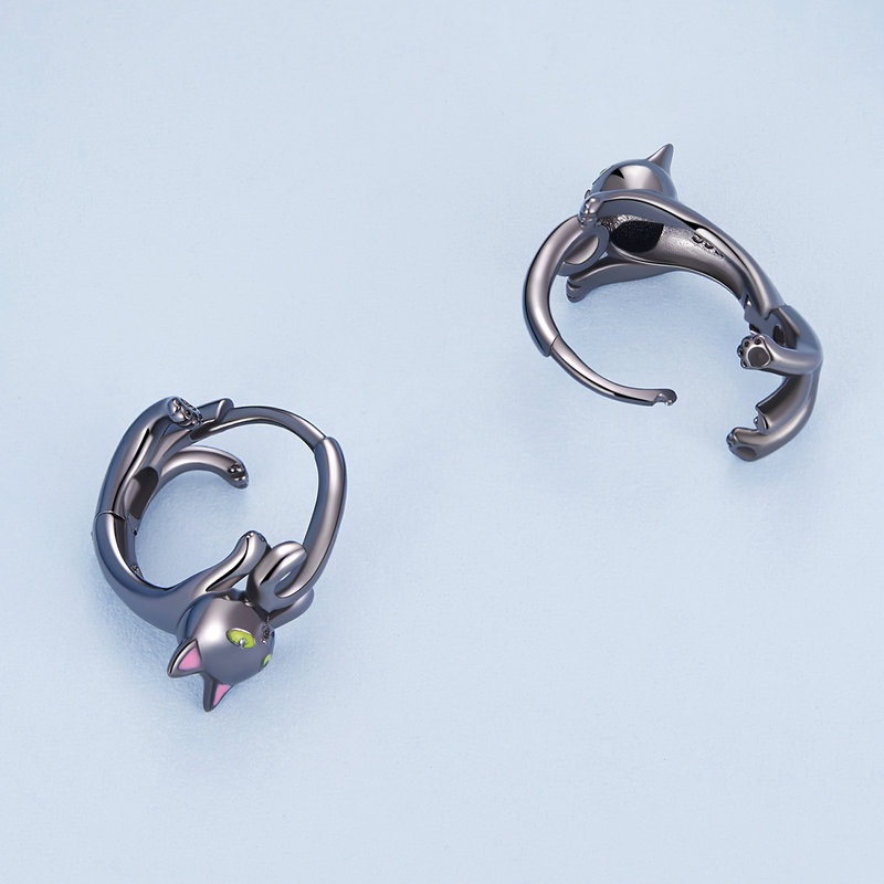Brincos Bamoer 925 Prata De Gato Preto Jóias De Moda Para Meninas SCE965