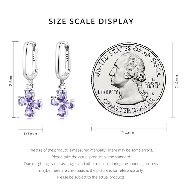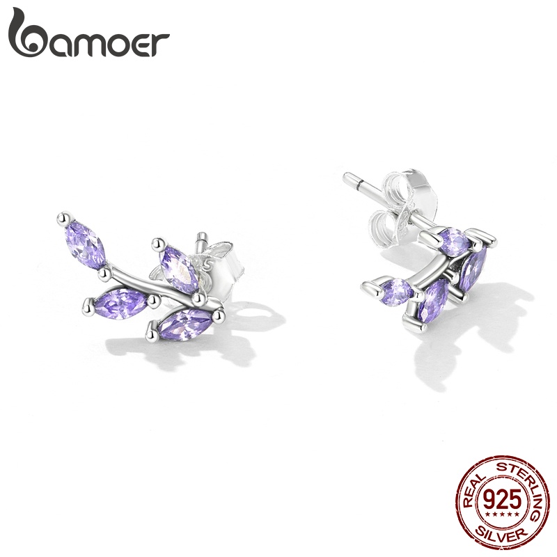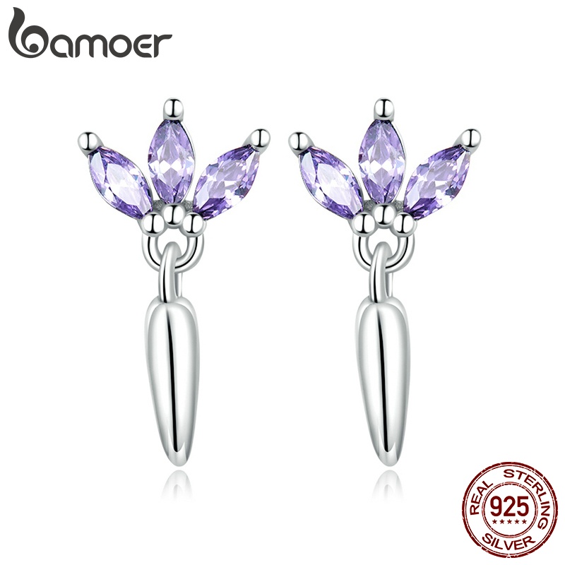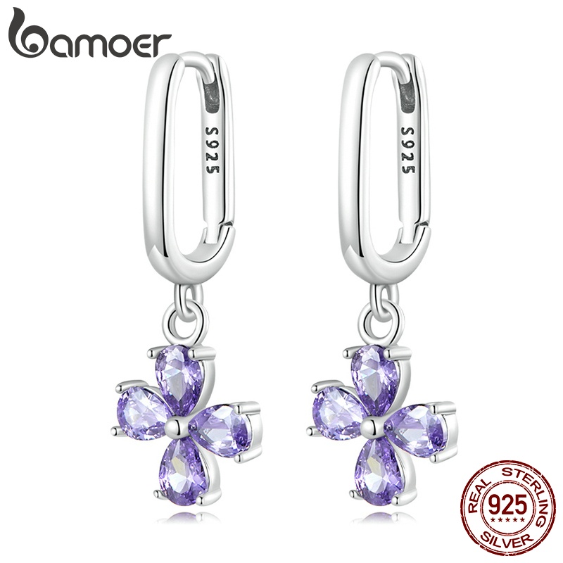 Brincos Bamoer 925 Prata Púrpura Flor Padrão Cruz Moda Joias Para Mulheres Presente SCE1428
