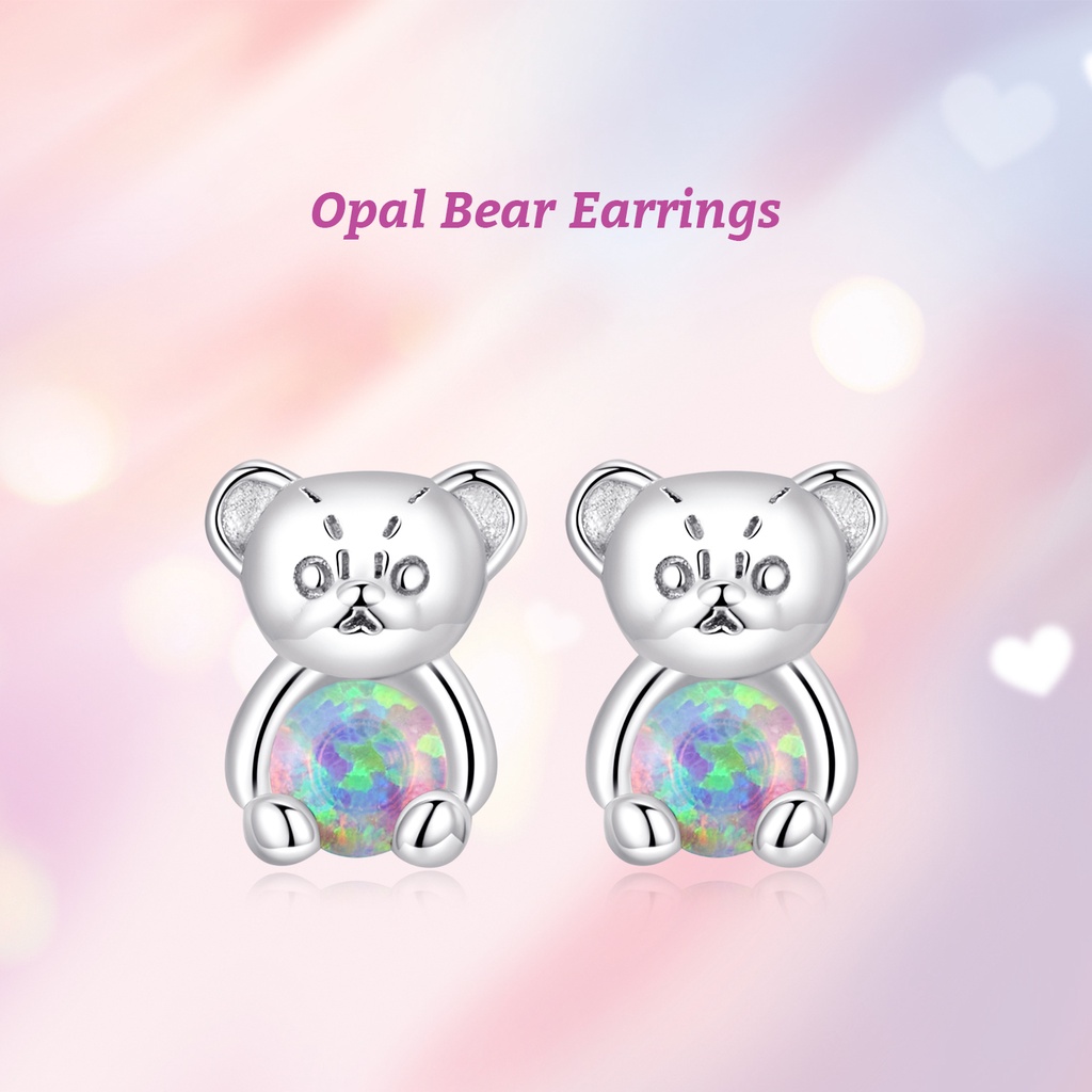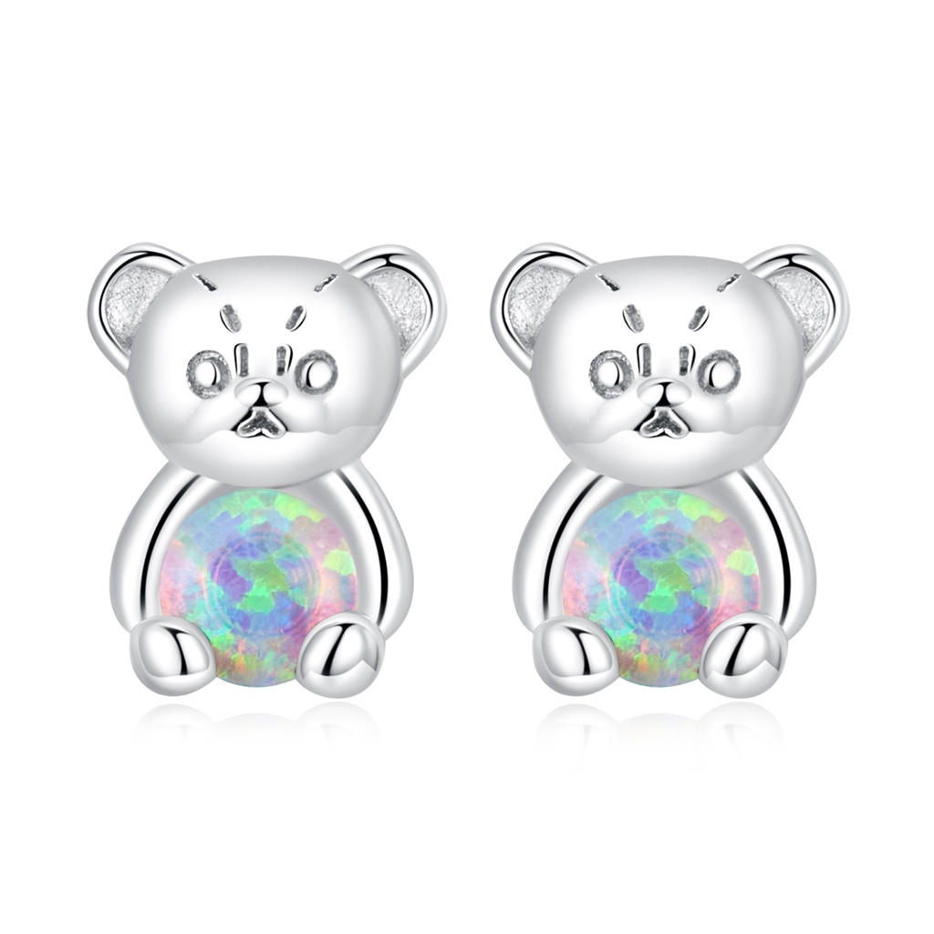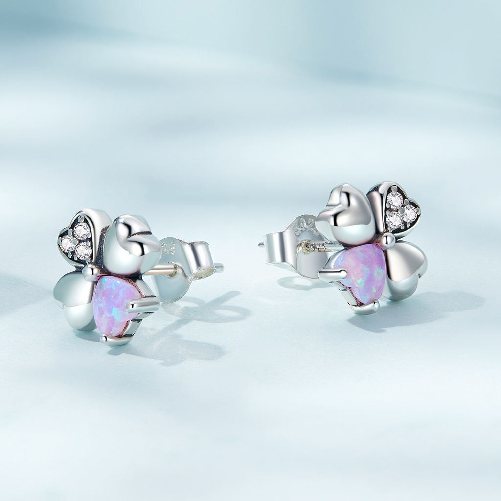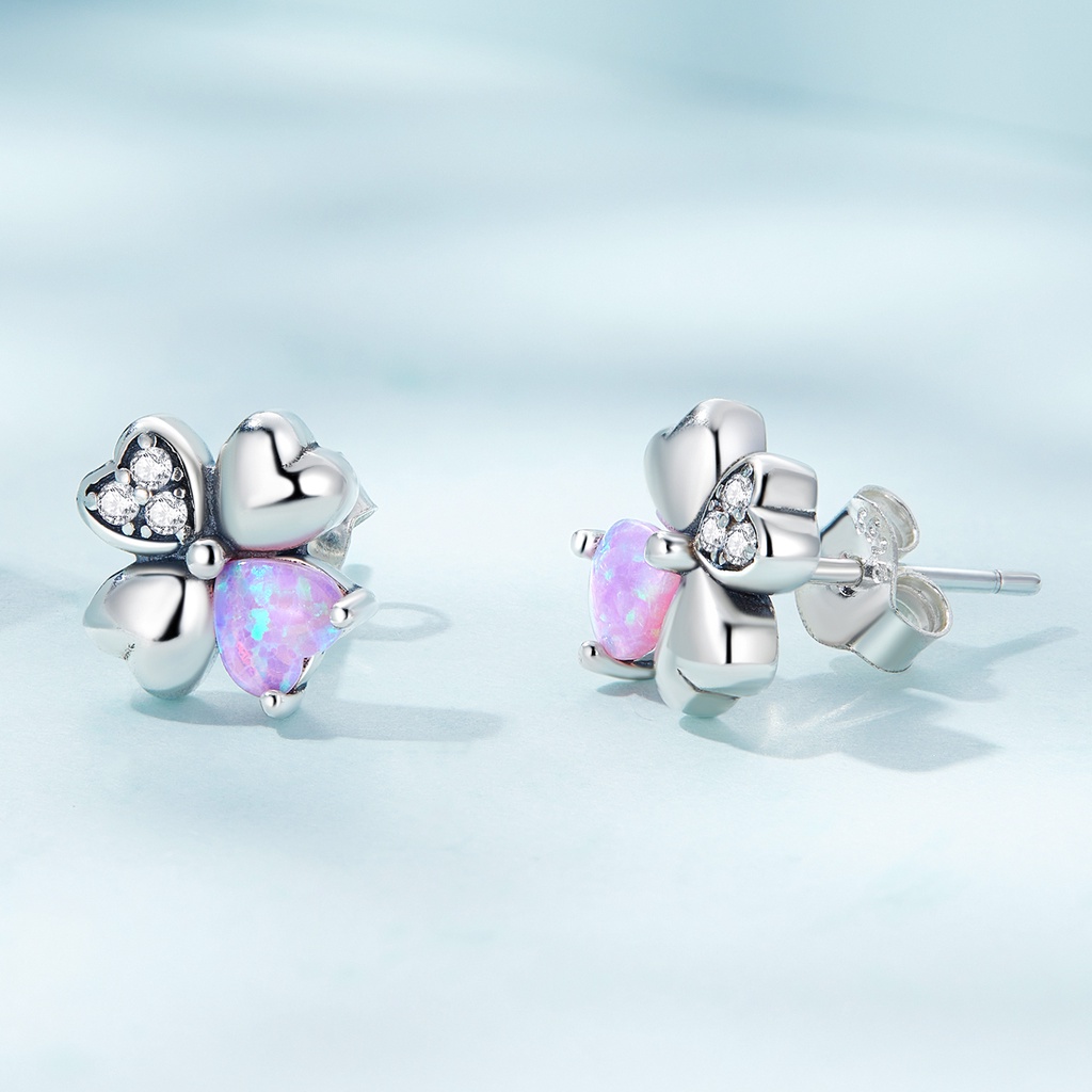 Brincos Bamoer 925 Prata Rosa Opala Urso Colorido Amor Quatro Folhas Orelha Para Meninas