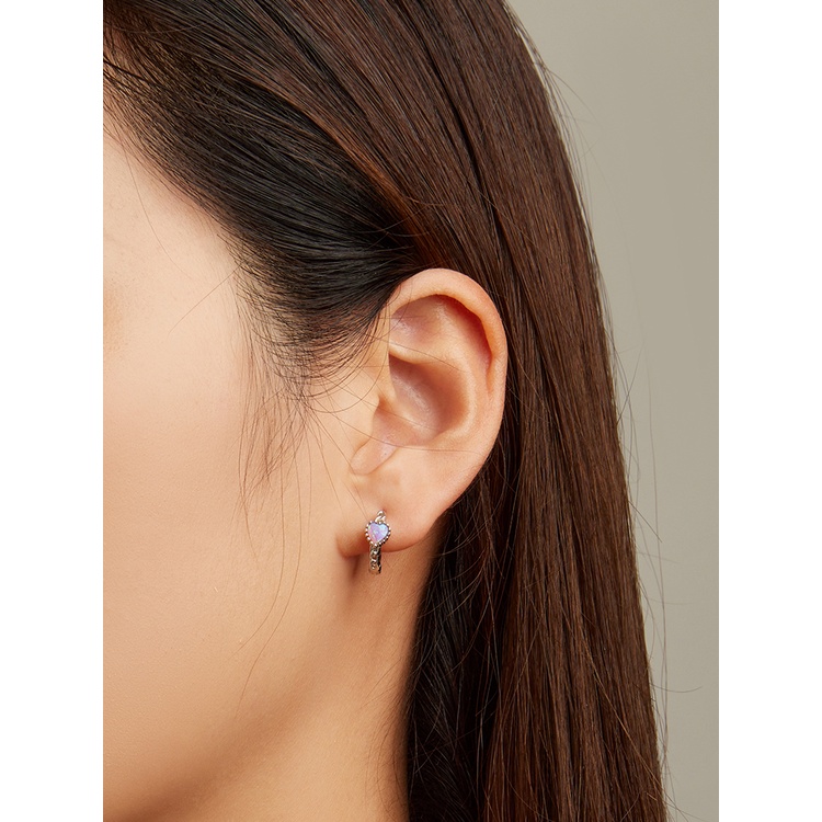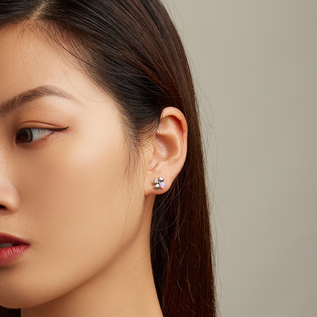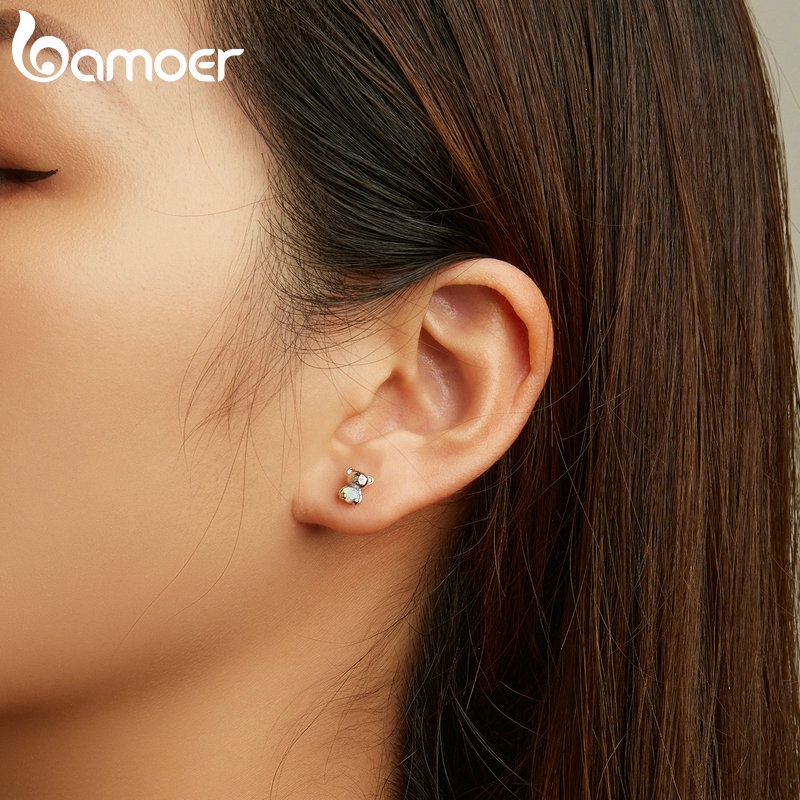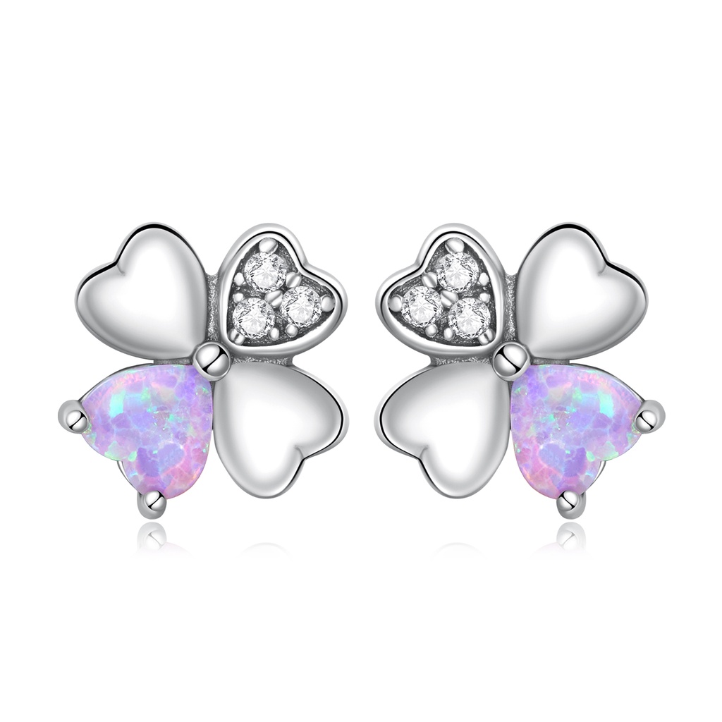 Brincos Bamoer 925 Prata Rosa Opala Urso Colorido Amor Quatro Folhas Orelha Para Meninas