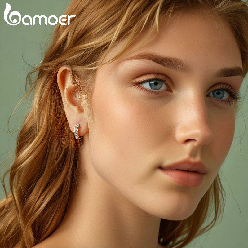 Brincos Bamoer 925 Sterling Sliver Hoop Desenho De Folha Jóias Presentes Para Mulheres