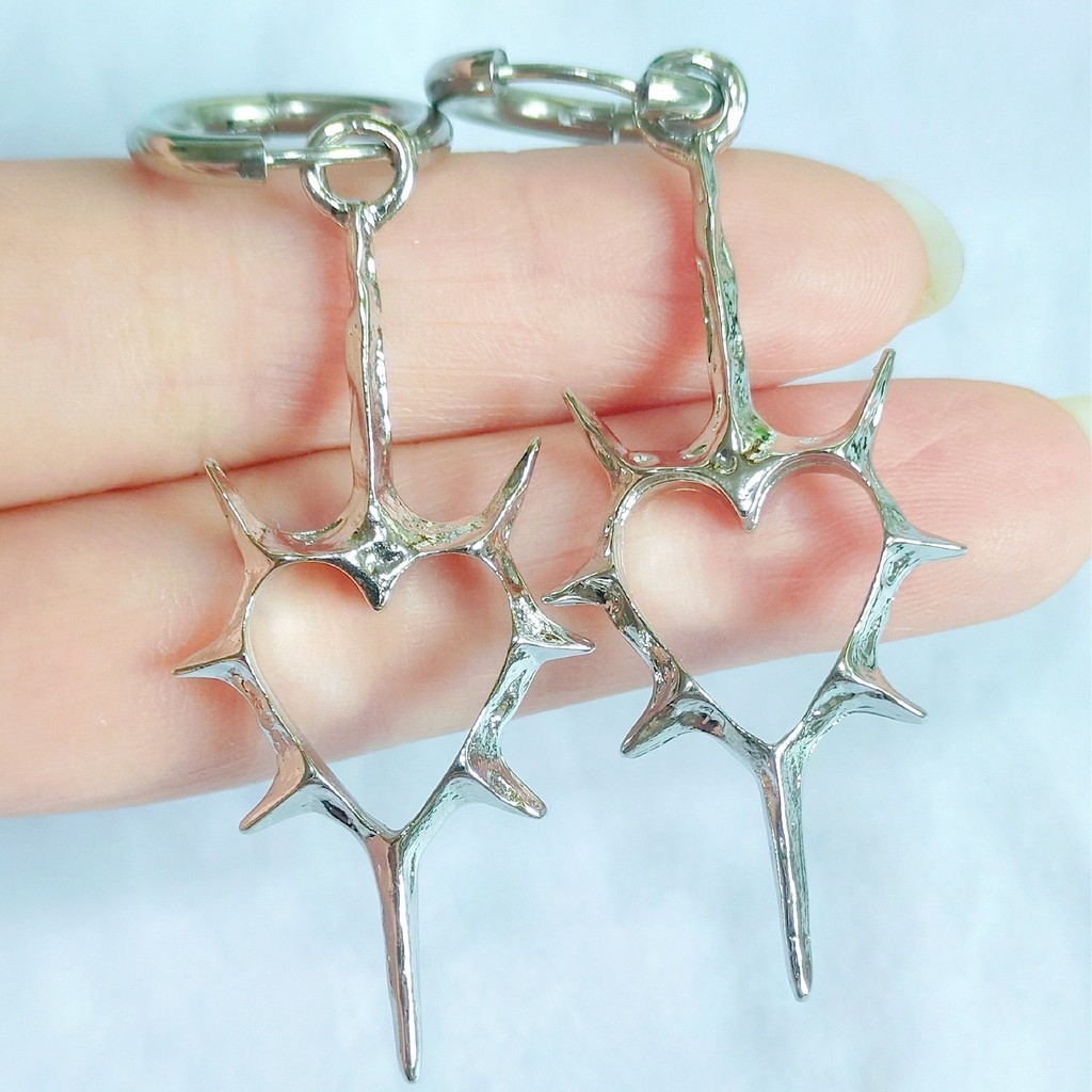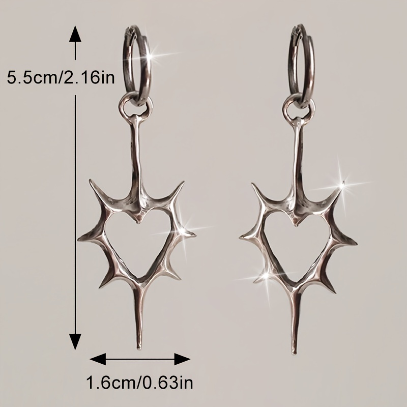 Brincos De Coração Gótico – Pares De Amor Espinhoso De Aço Inoxidável , Joias Punk Com Pontas Para Homens E Mulheres