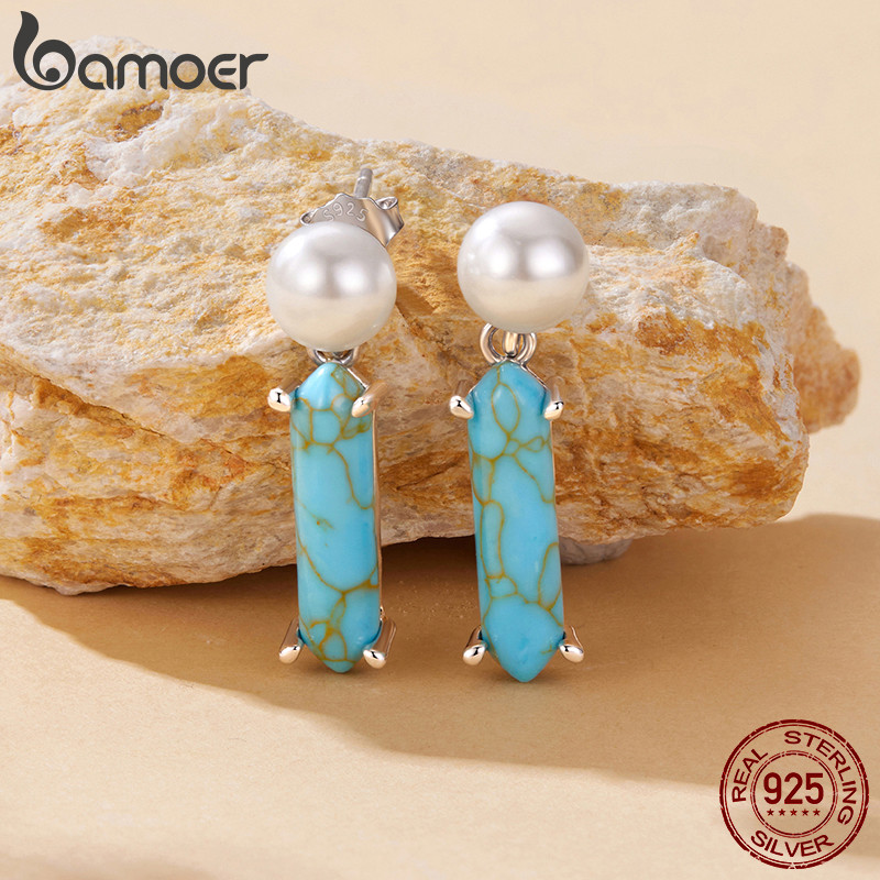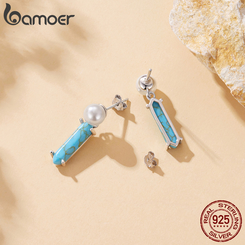 Brincos De Prata Esterlina 925 Bamoer Pérola Turquesa Design Joias Presentes Para Mulheres