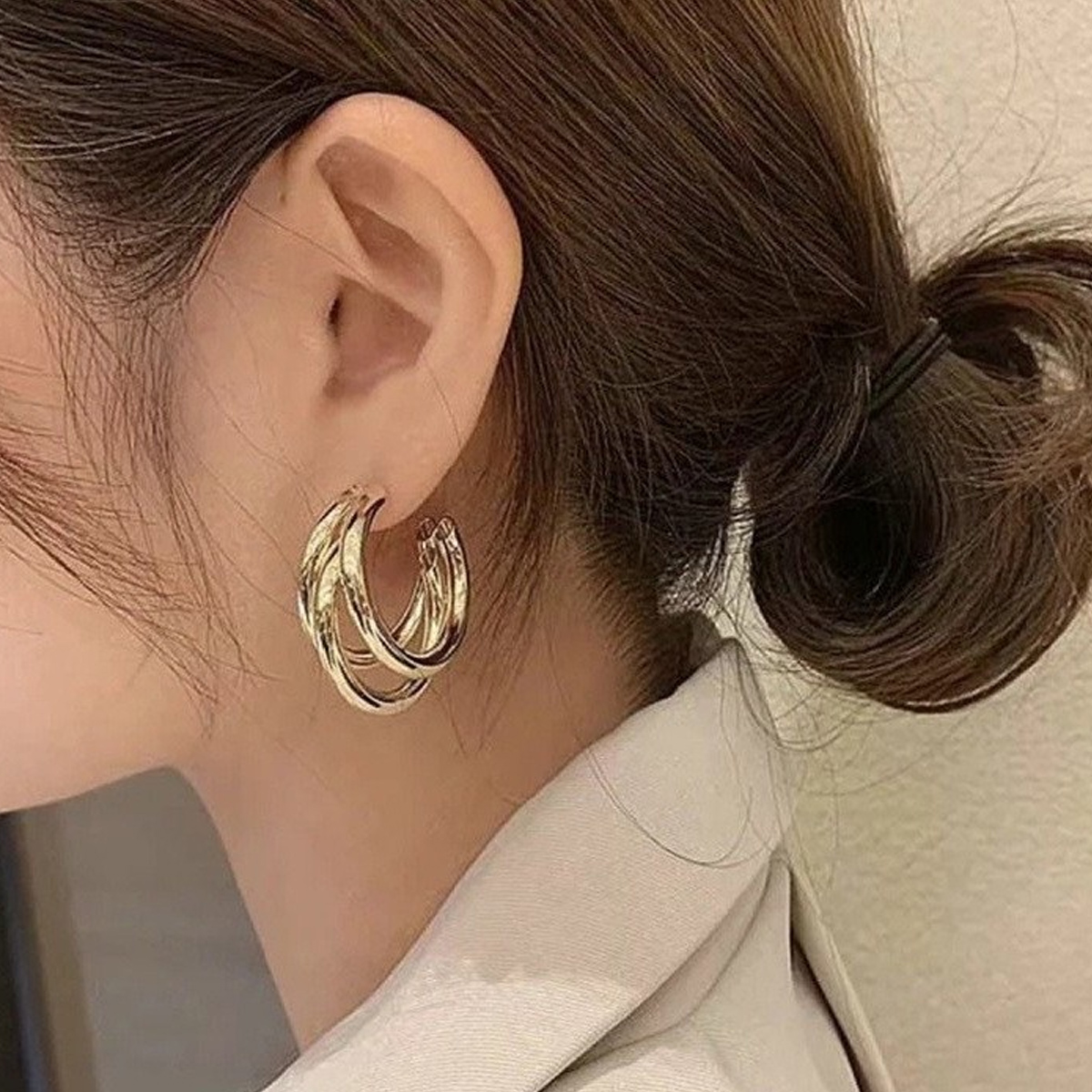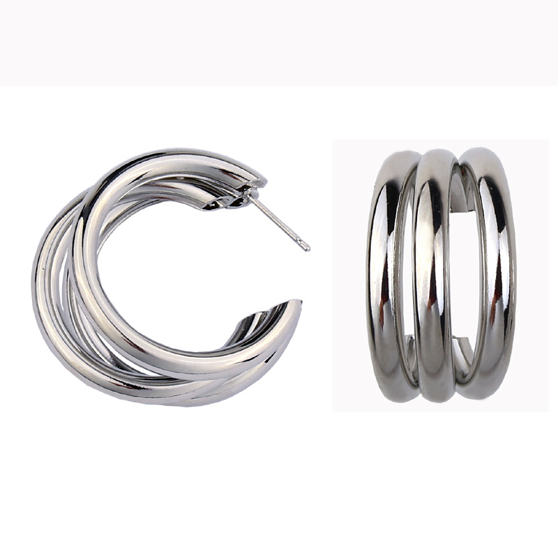 Brincos De Tubo De Argola Triplo , Metal Liso , Ouro , Prata , Chique , Joias Minimalistas Para Mulheres , Tendência De