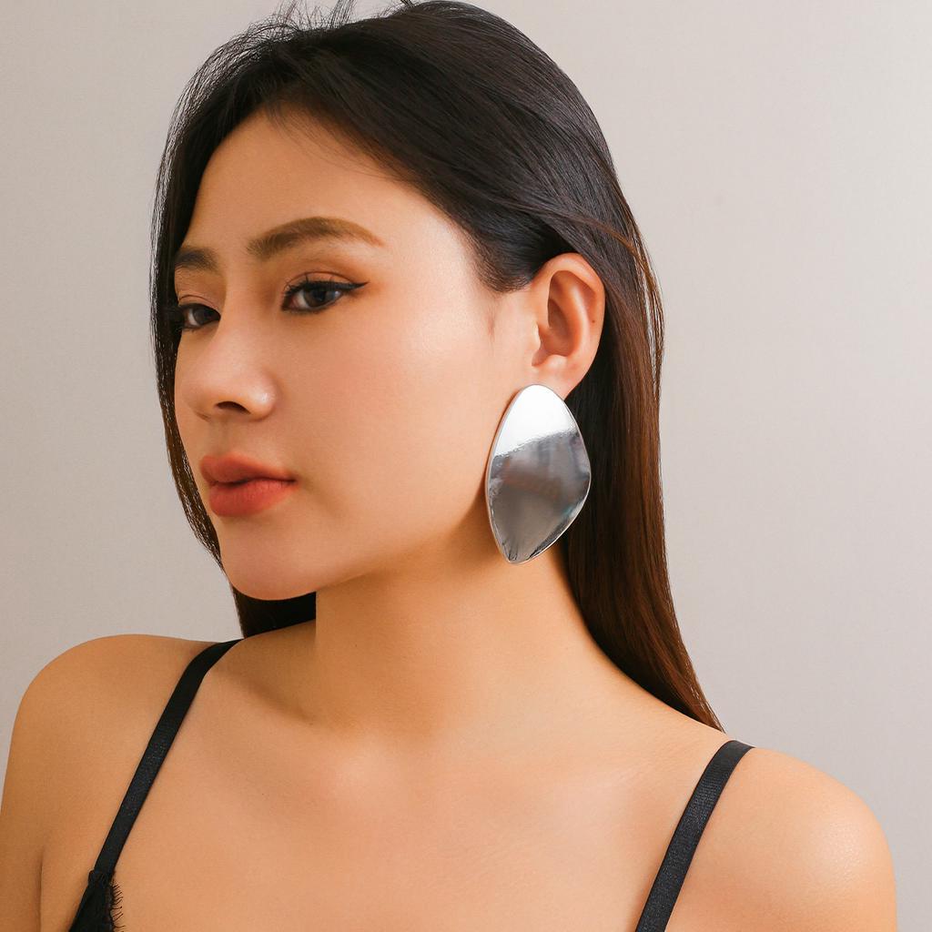 Brincos Exagerados de Metal com Superfície Lisa Grande para Mulheres Acessórios de Rua Diários Femininos 2024