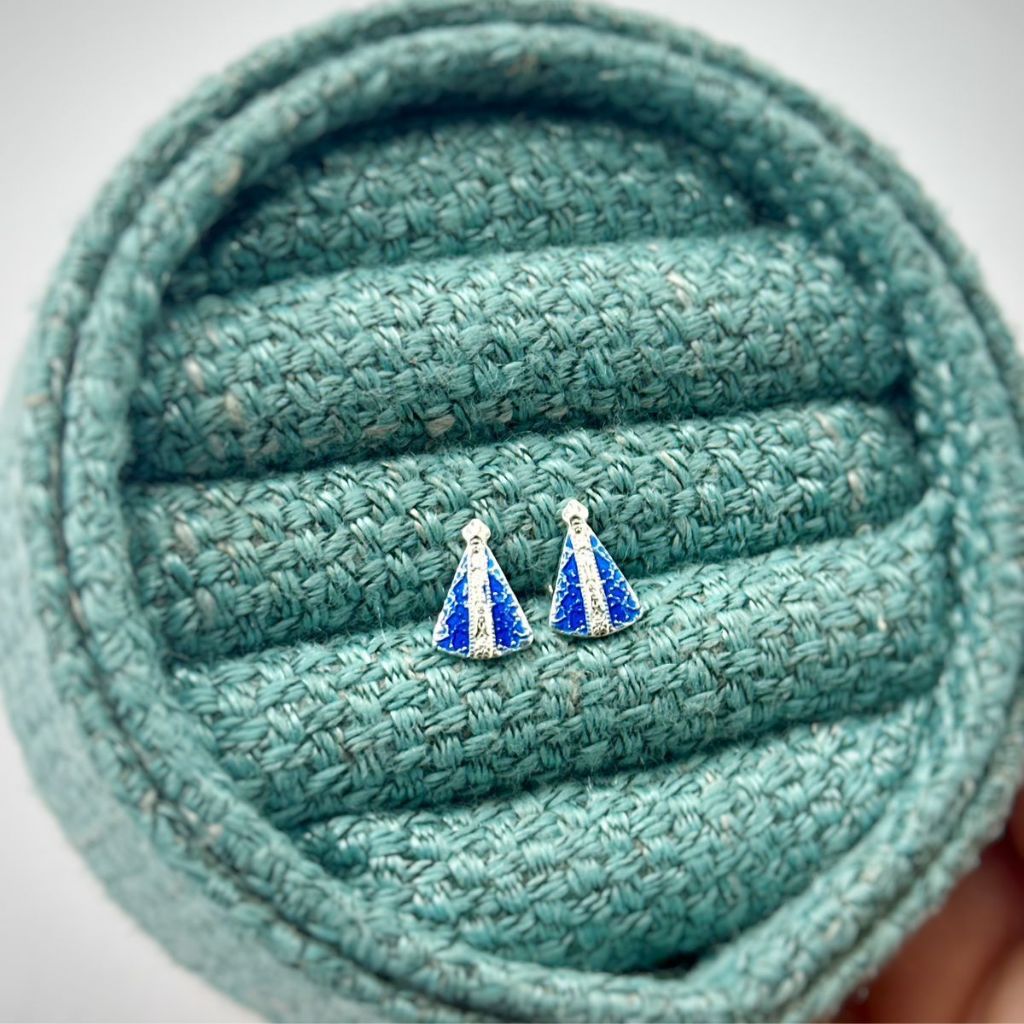 Brincos prata 925 Nossa Senhora Aparecida manto azul