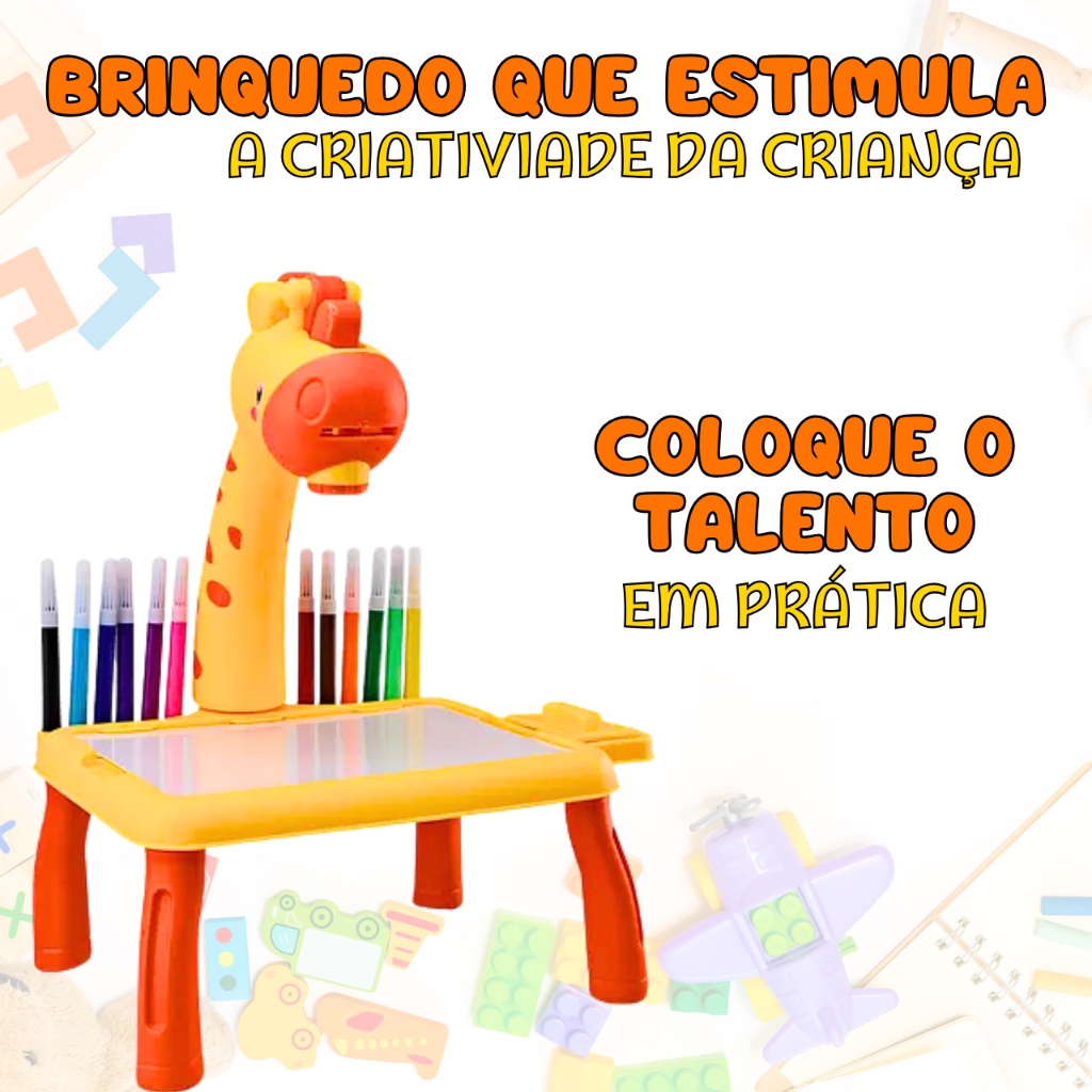 Brinquedo Mesa Projetora De Desenho Infantil Girafa Lousa Mágica Digital LCD