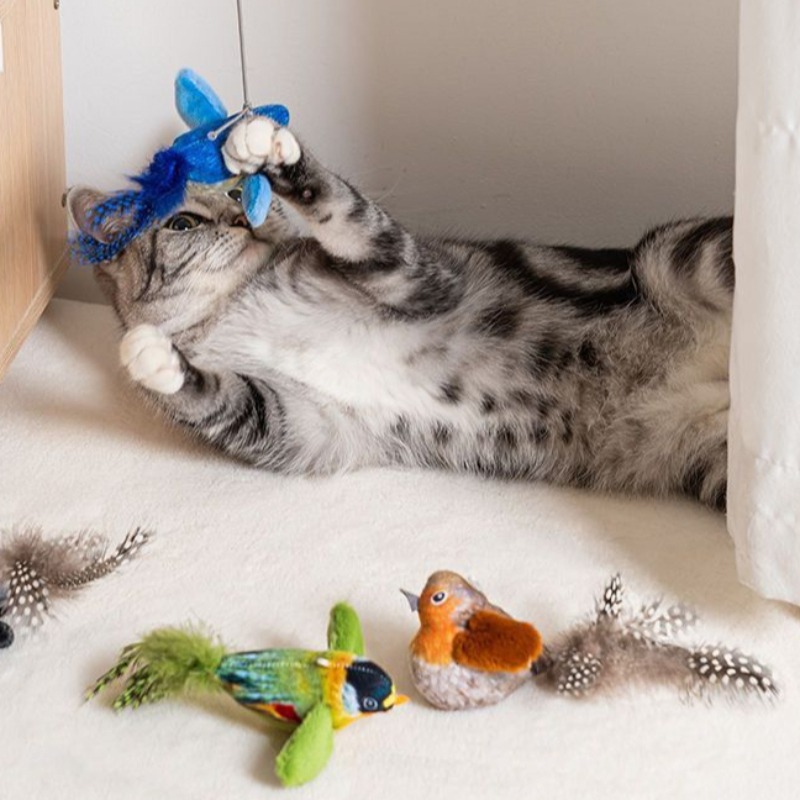 Brinquedos Interativos Para Gatos – Brinquedo Realista Com Som De Pássaro De Pelúcia Internos