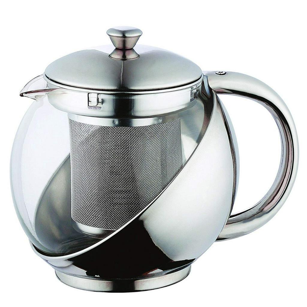Bule Para Cha Inox e Vidro 700 Ml Com Filtro Inox