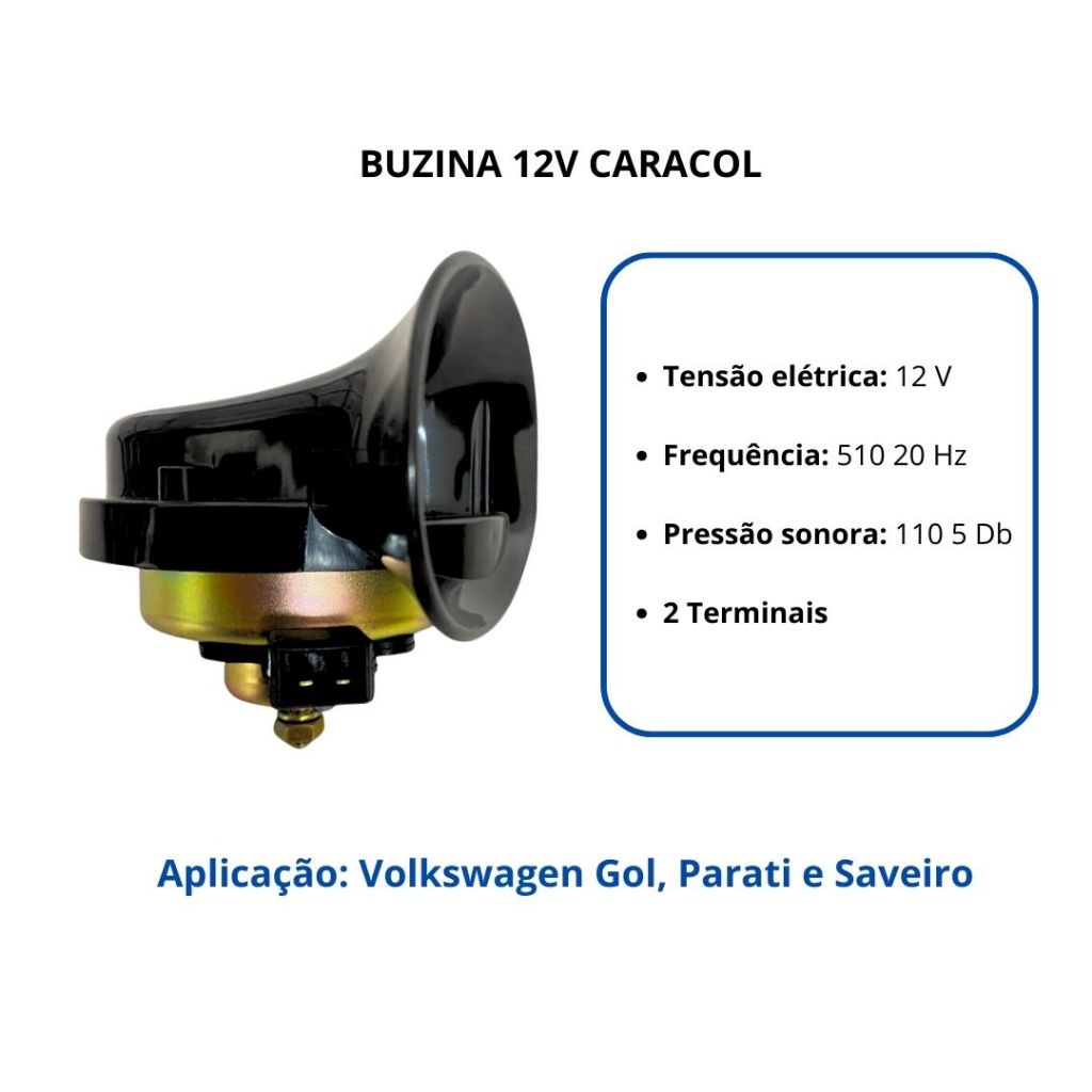 Buzina Caracol 12v Individual Para Volkswagen Gol Parati 1.0 1.6 1.8 2.0 Saveiro 1.6 1.8 2.0 GB1057