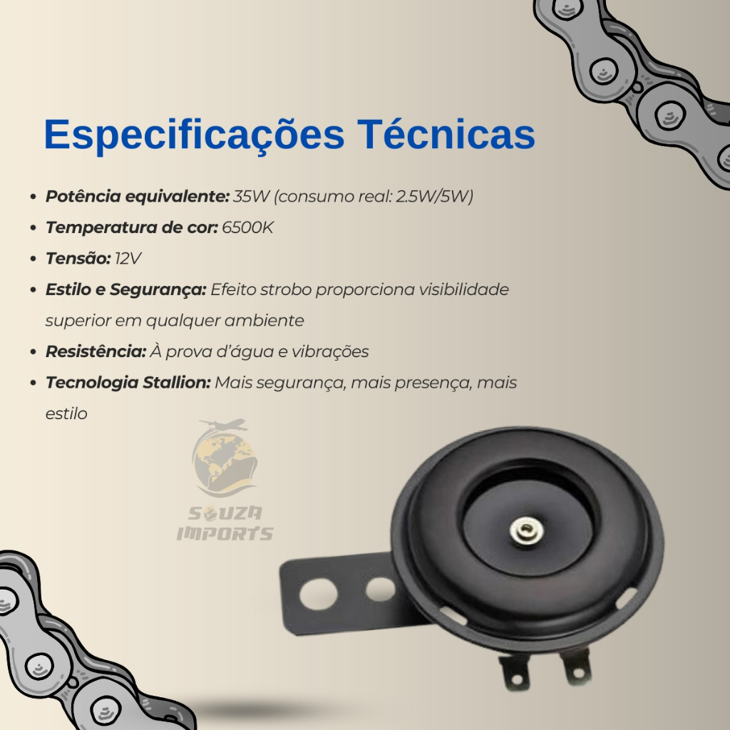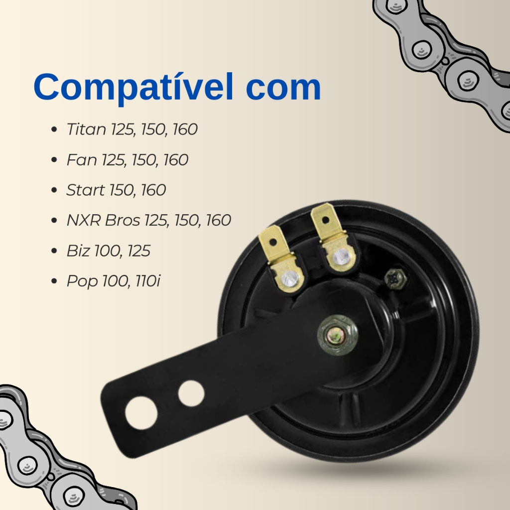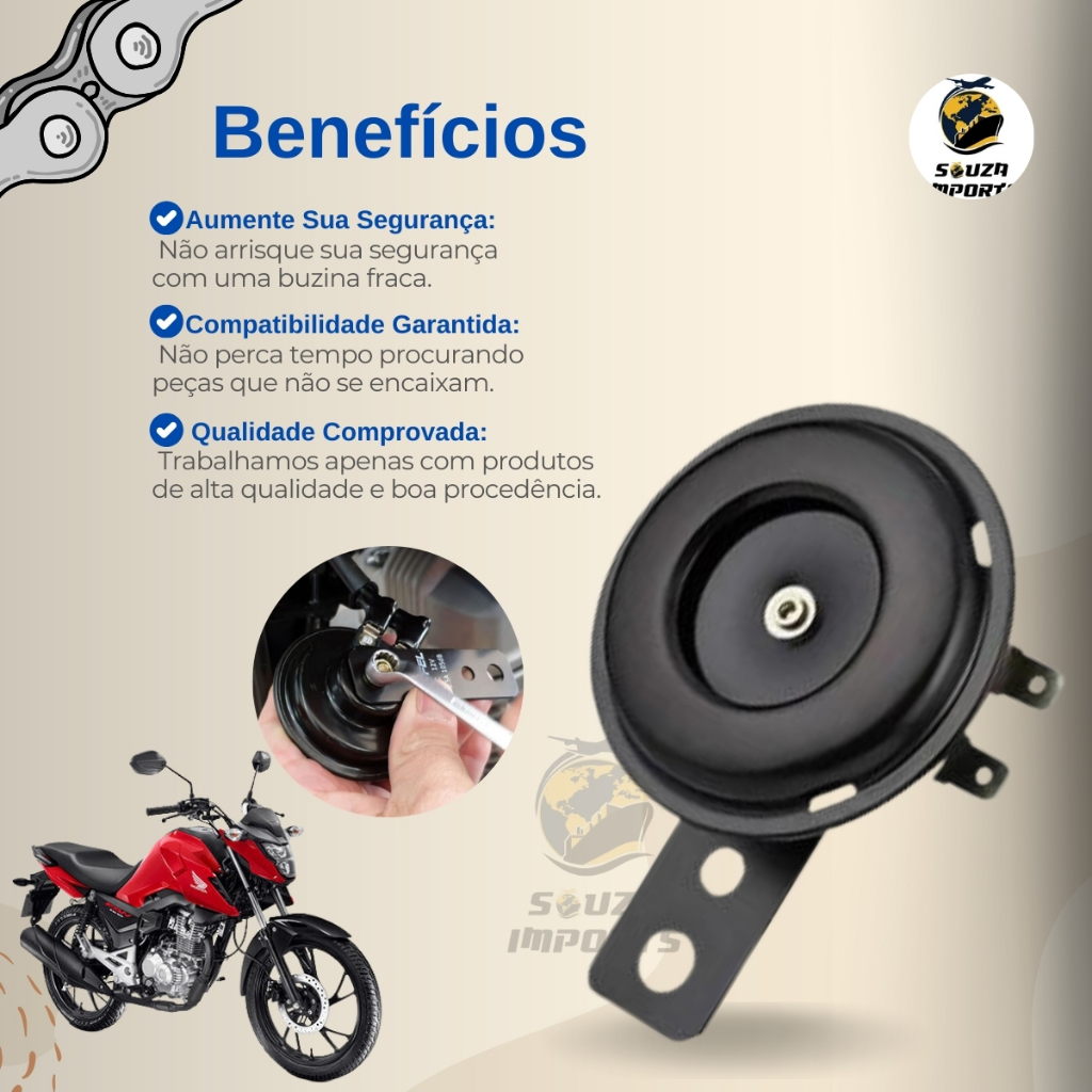 Buzina Moto 12v Som Potente Cg Fan Titan 125 150 160 Biz Pop Sem Adaptações Alta Durabilidade
