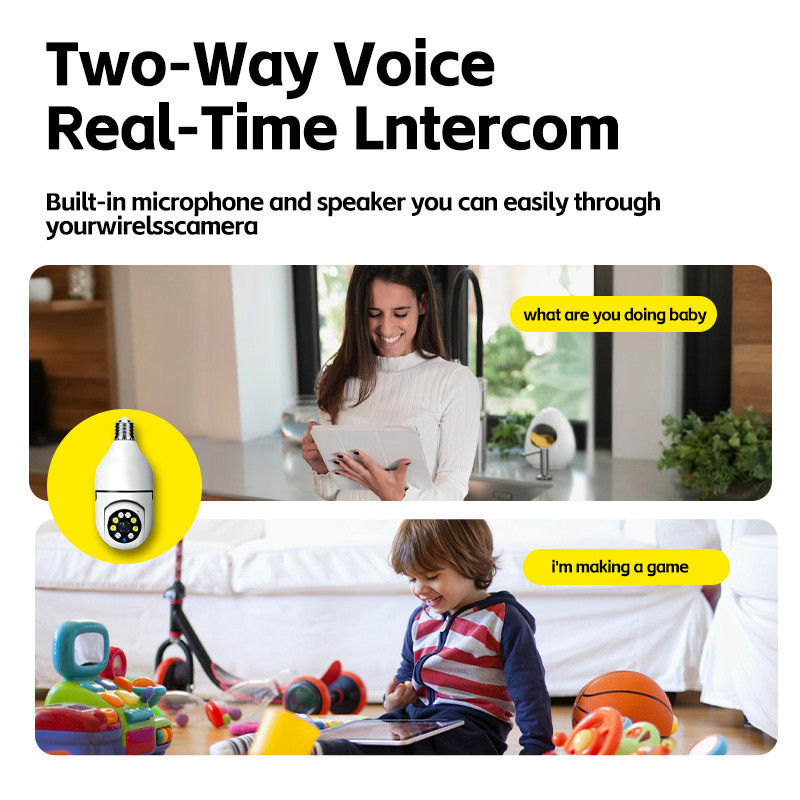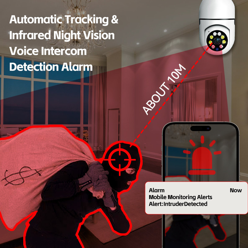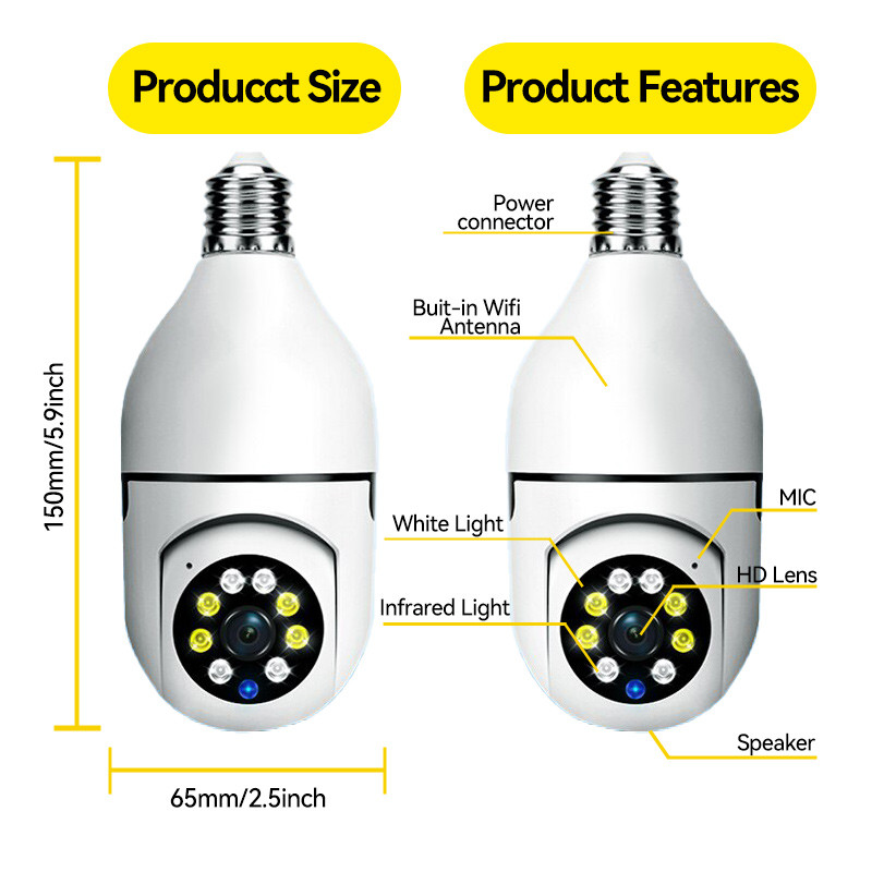 Câmera Bulbo E27 5G, Visão Noturna Colorida, Rastreamento Automático, Zoom, WiFi 1080P