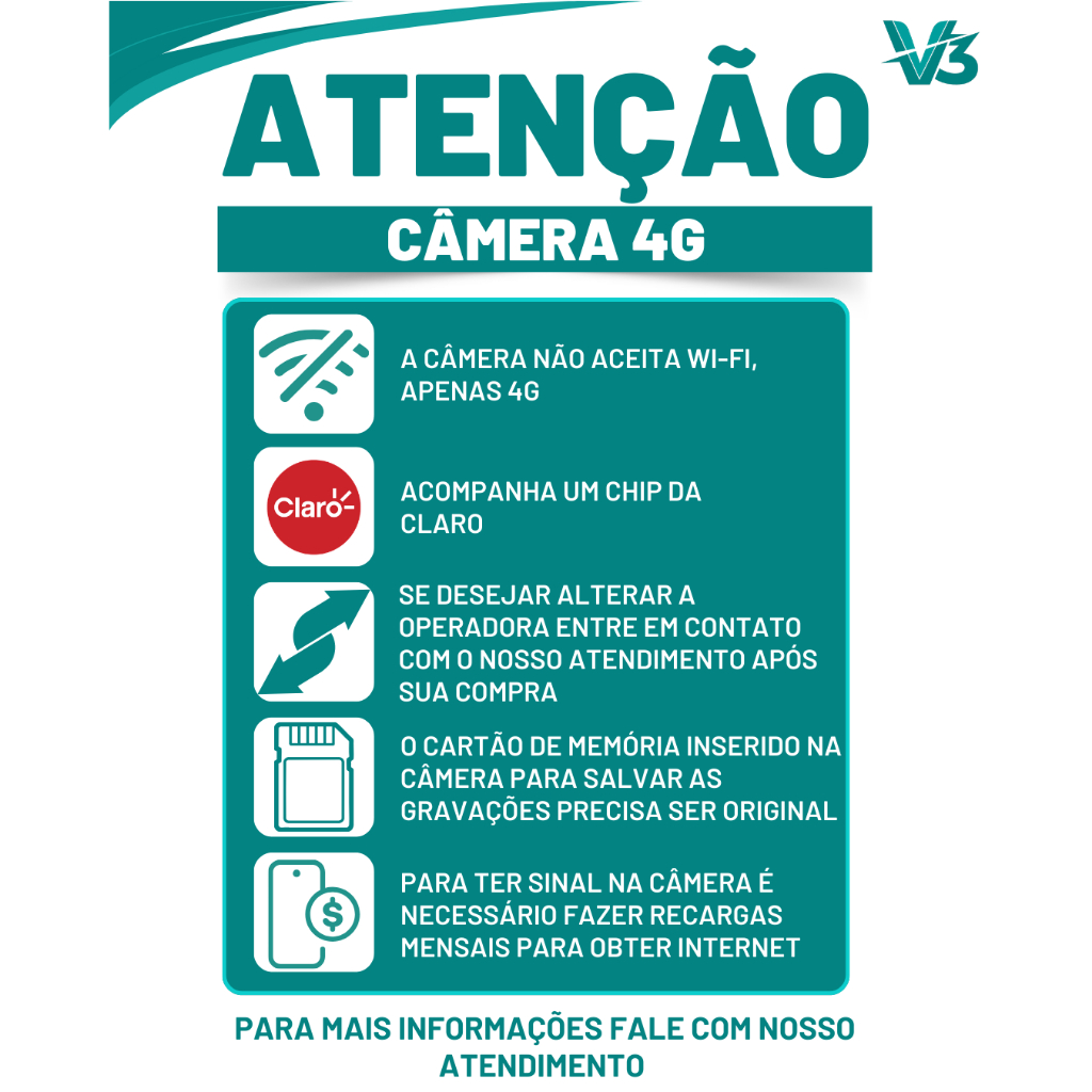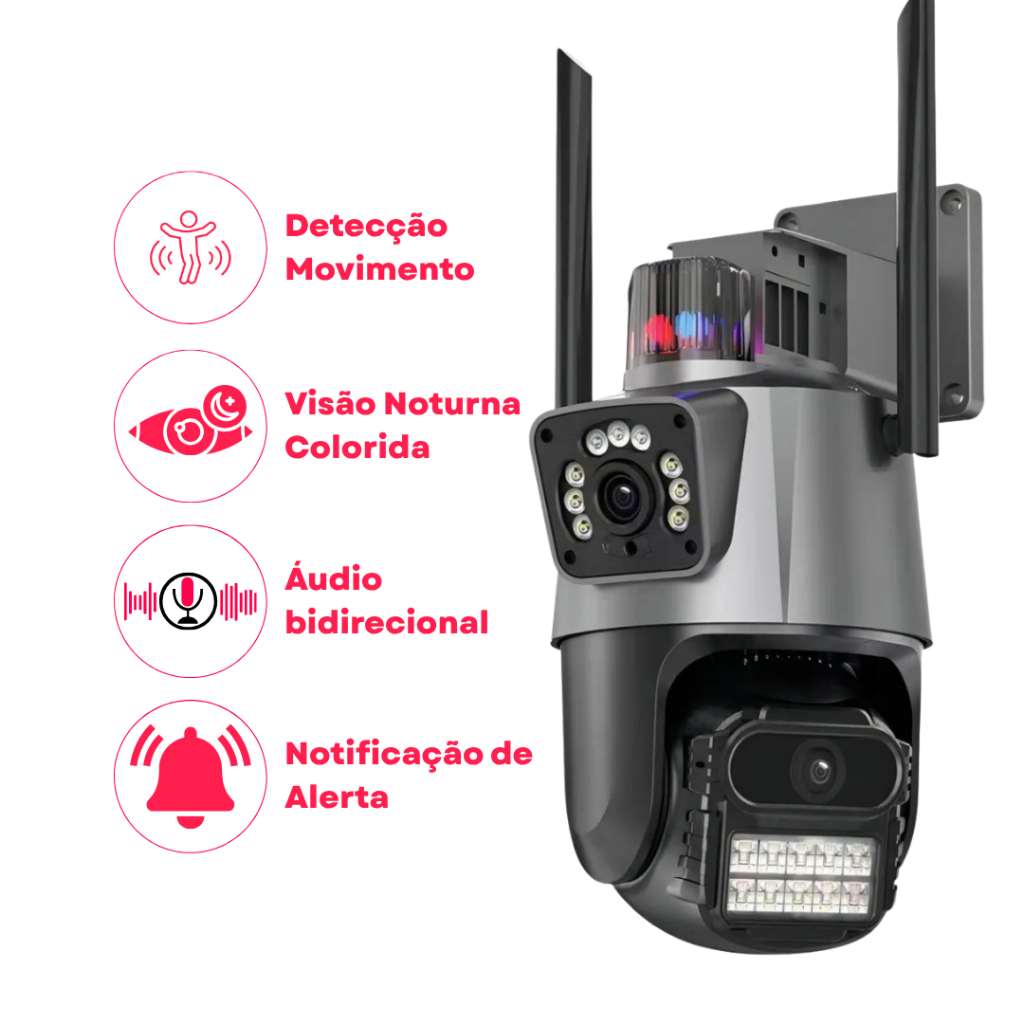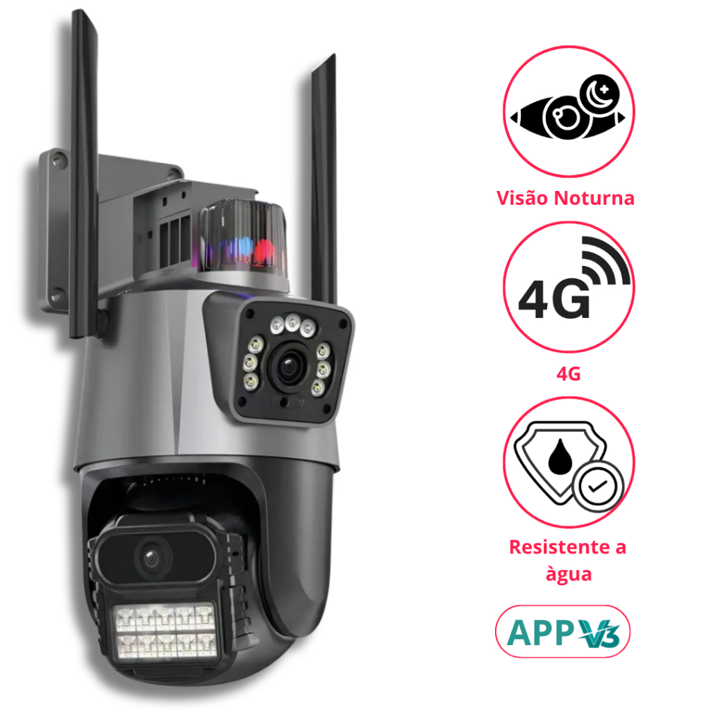 Câmera Externa App V3 4G com Alarme Sirene Lente Dupla 3.6mm Rotação Visão Noturna