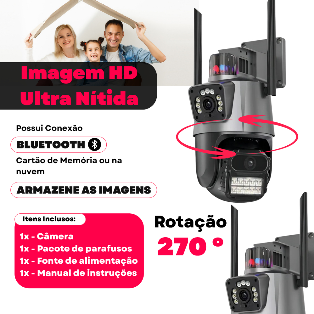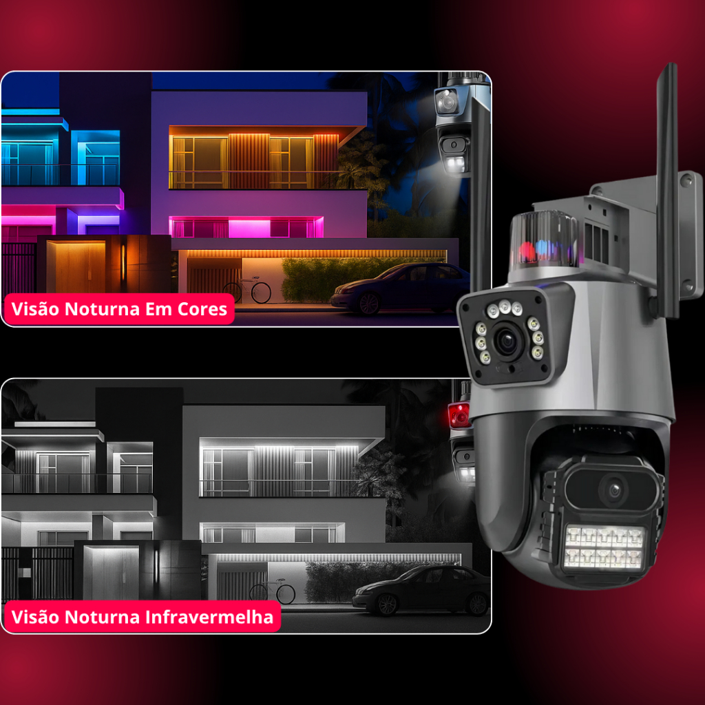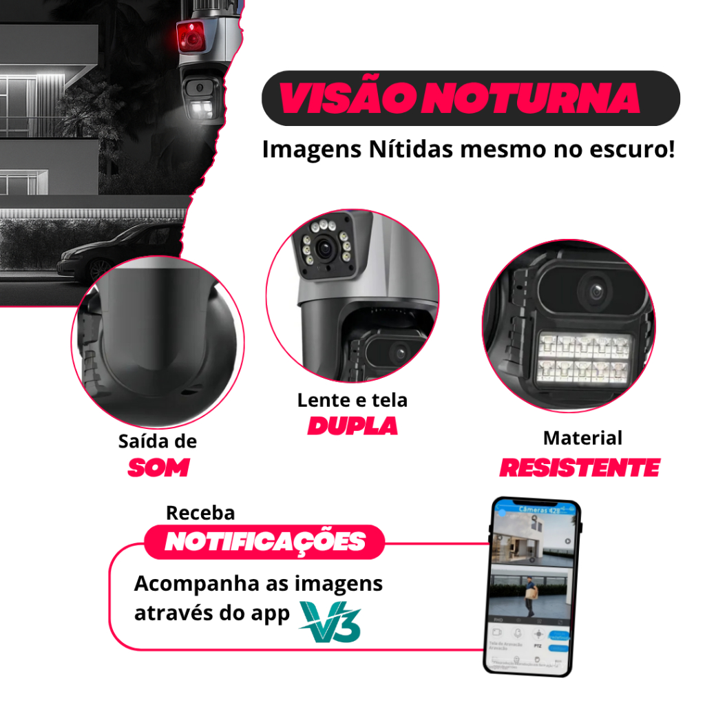 Câmera Externa App V3 4G com Alarme Sirene Lente Dupla 3.6mm Rotação Visão Noturna