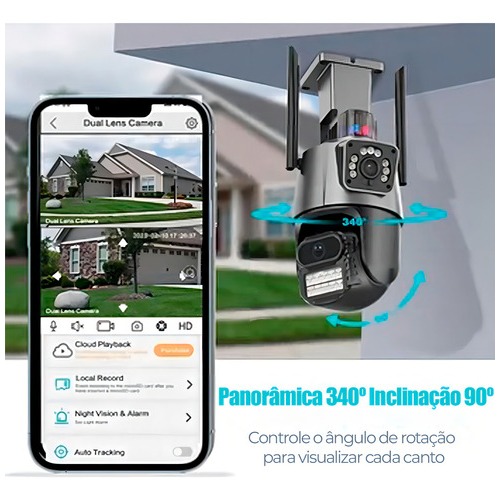 Câmera Segurança Wifi IP Dupla Lente Yoosee Visão Noturna Uso Externo Prova D'água Com Sirene Alarme