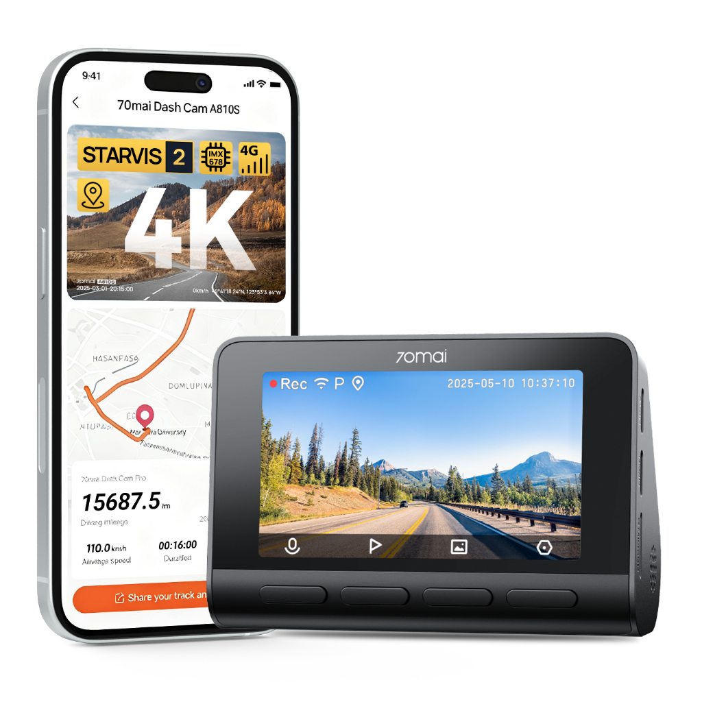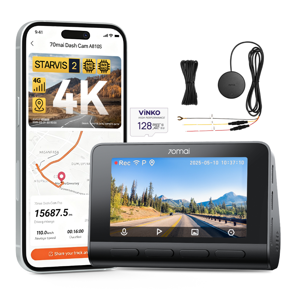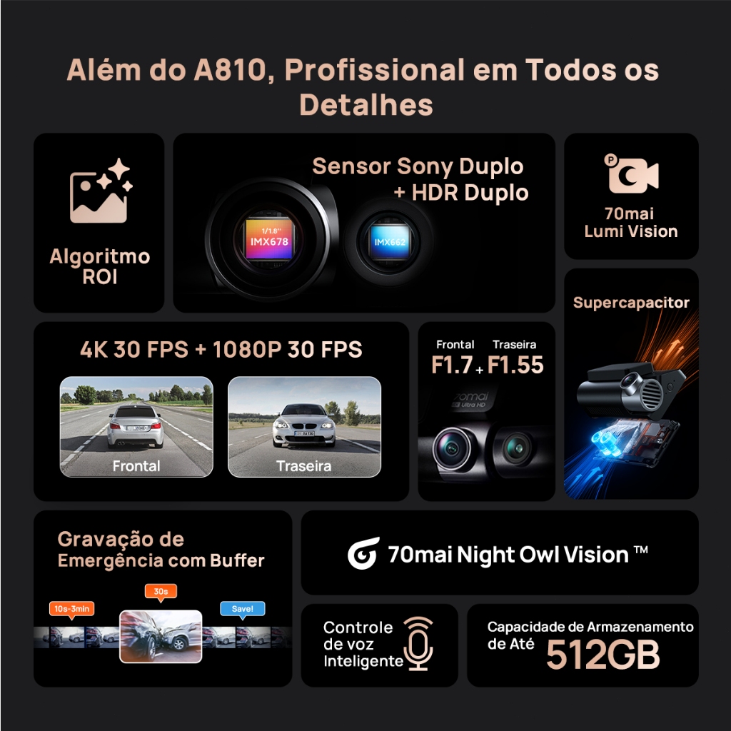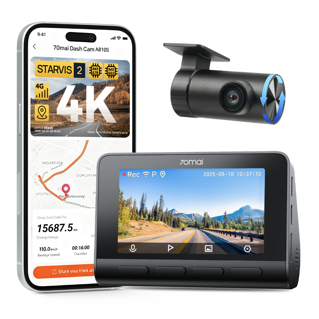 Câmera Veicular 70mai A810s 4k Sony STARVIS 2 lMX678 Hdr Com 4g Gps Adas Supercapacitor 24H Al ROI