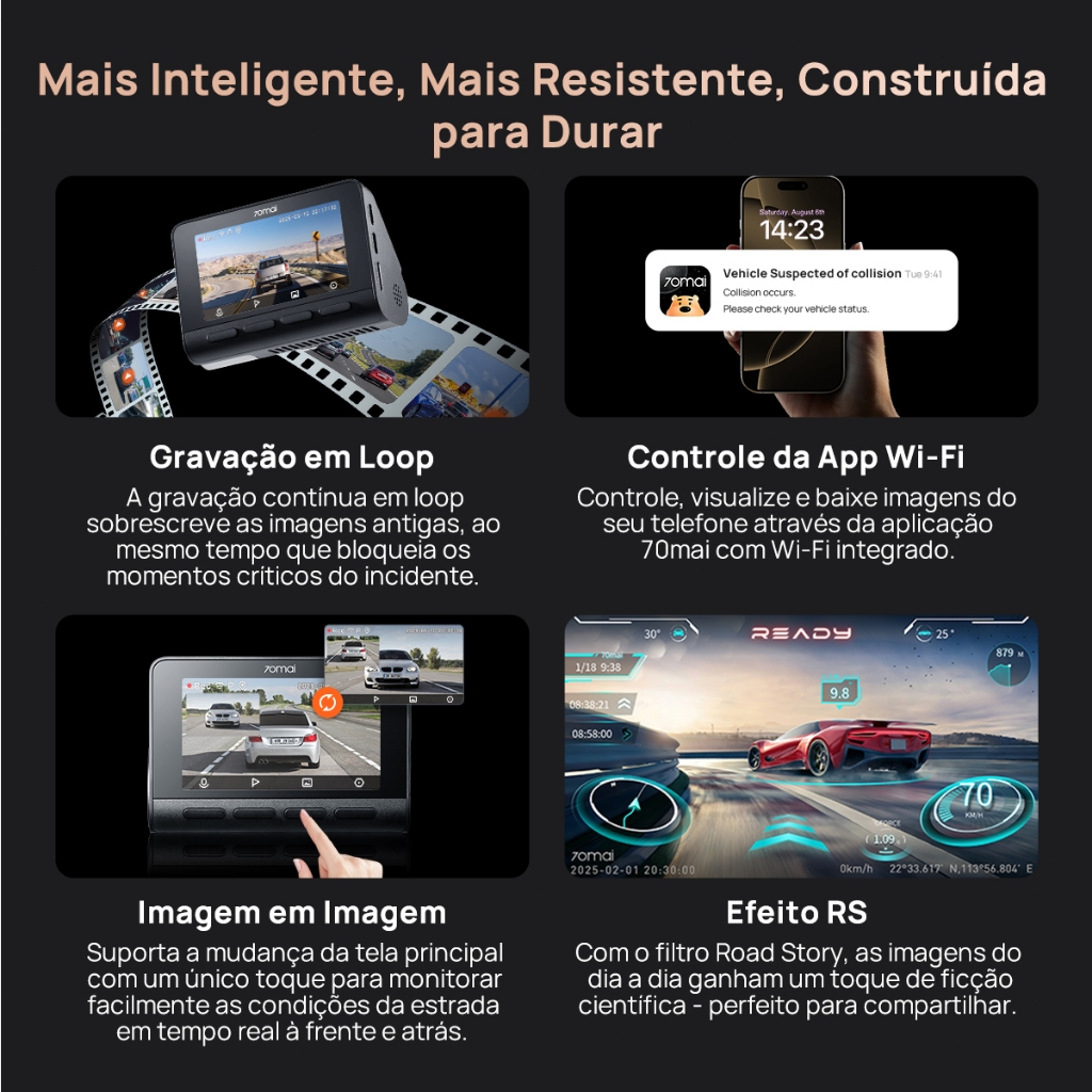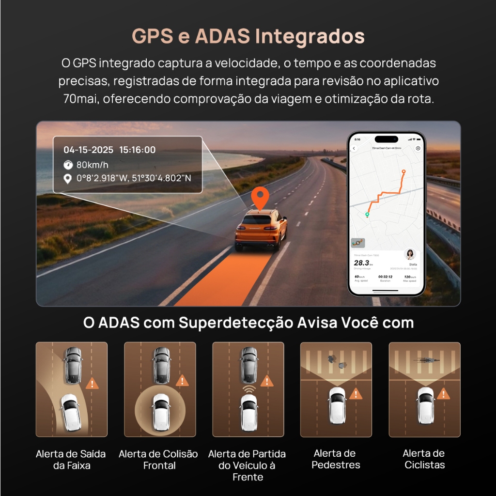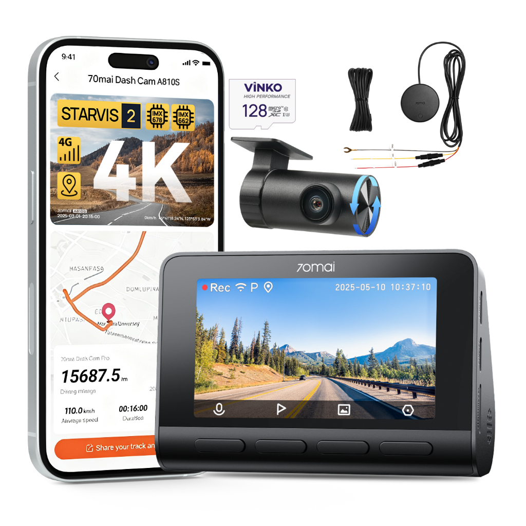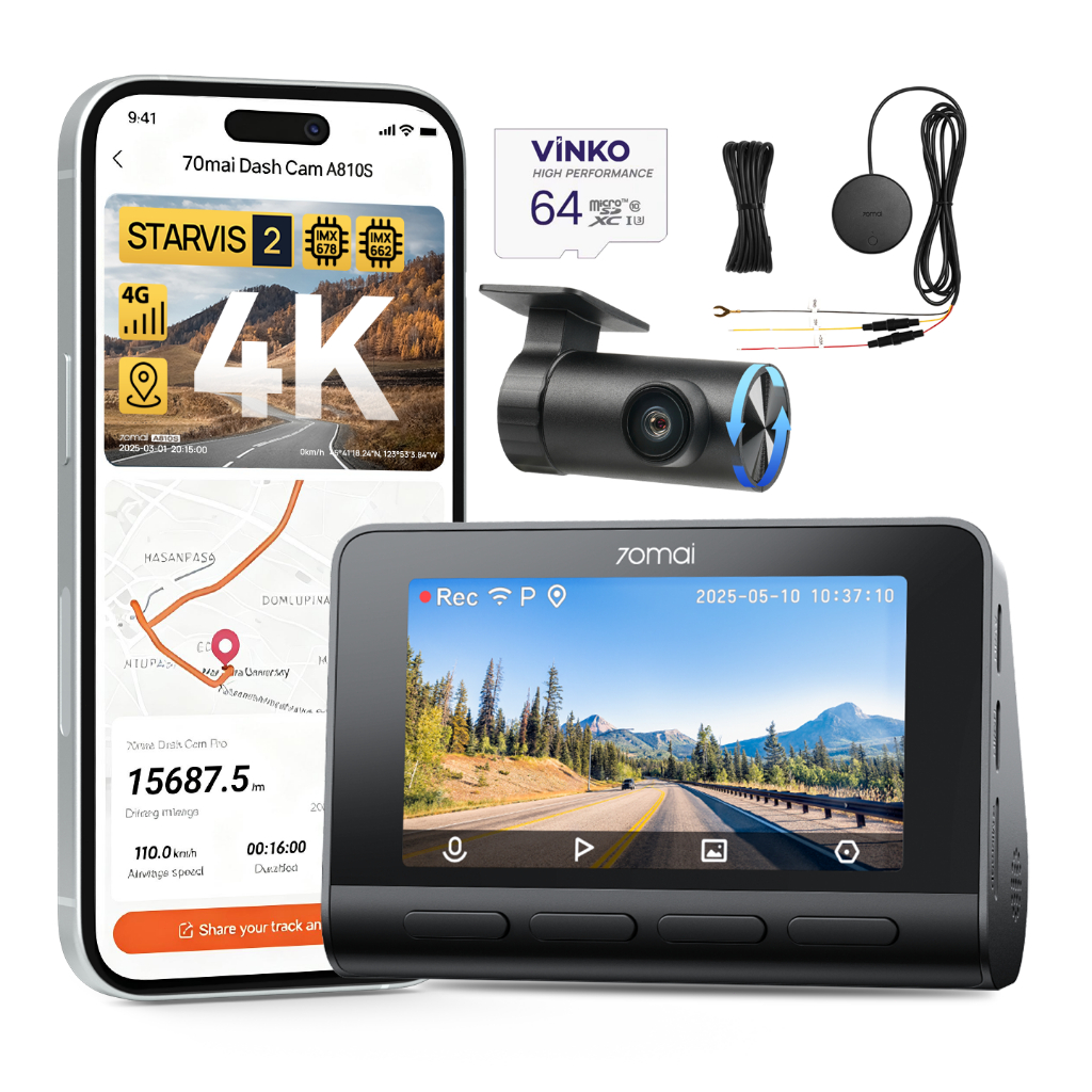 Câmera Veicular 70mai A810s 4k Sony STARVIS 2 lMX678 Hdr Com 4g Gps Adas Supercapacitor 24H Al ROI