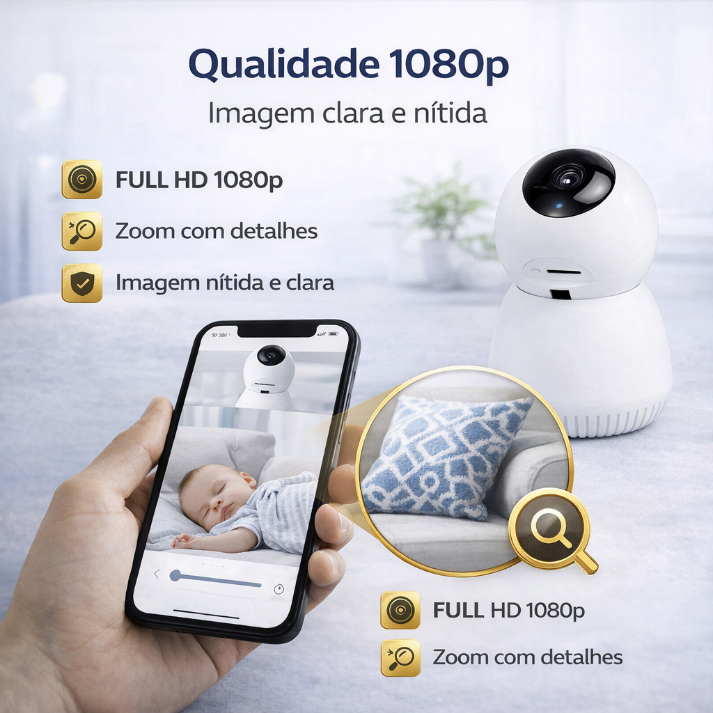 Câmera de Segurança WiFi 360° Full HD 1080p Visão Noturna Áudio Bidirecional IP Interna