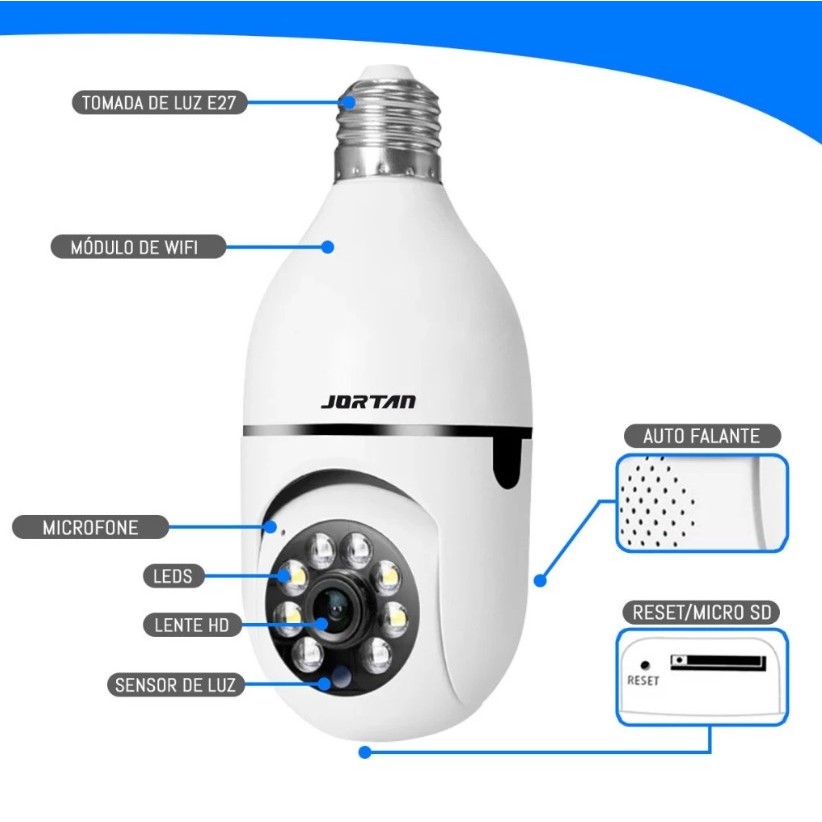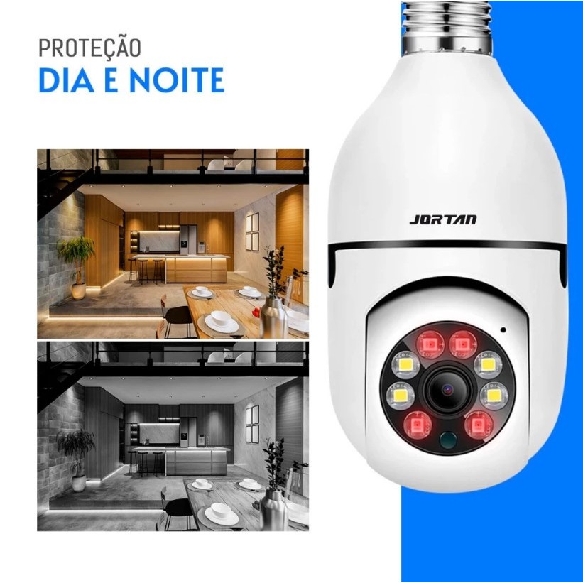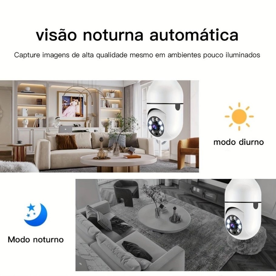 Câmera wifi ip sem fio giratória 360 com encaixe lampada bocal rosca visão noturna segurança bivolt