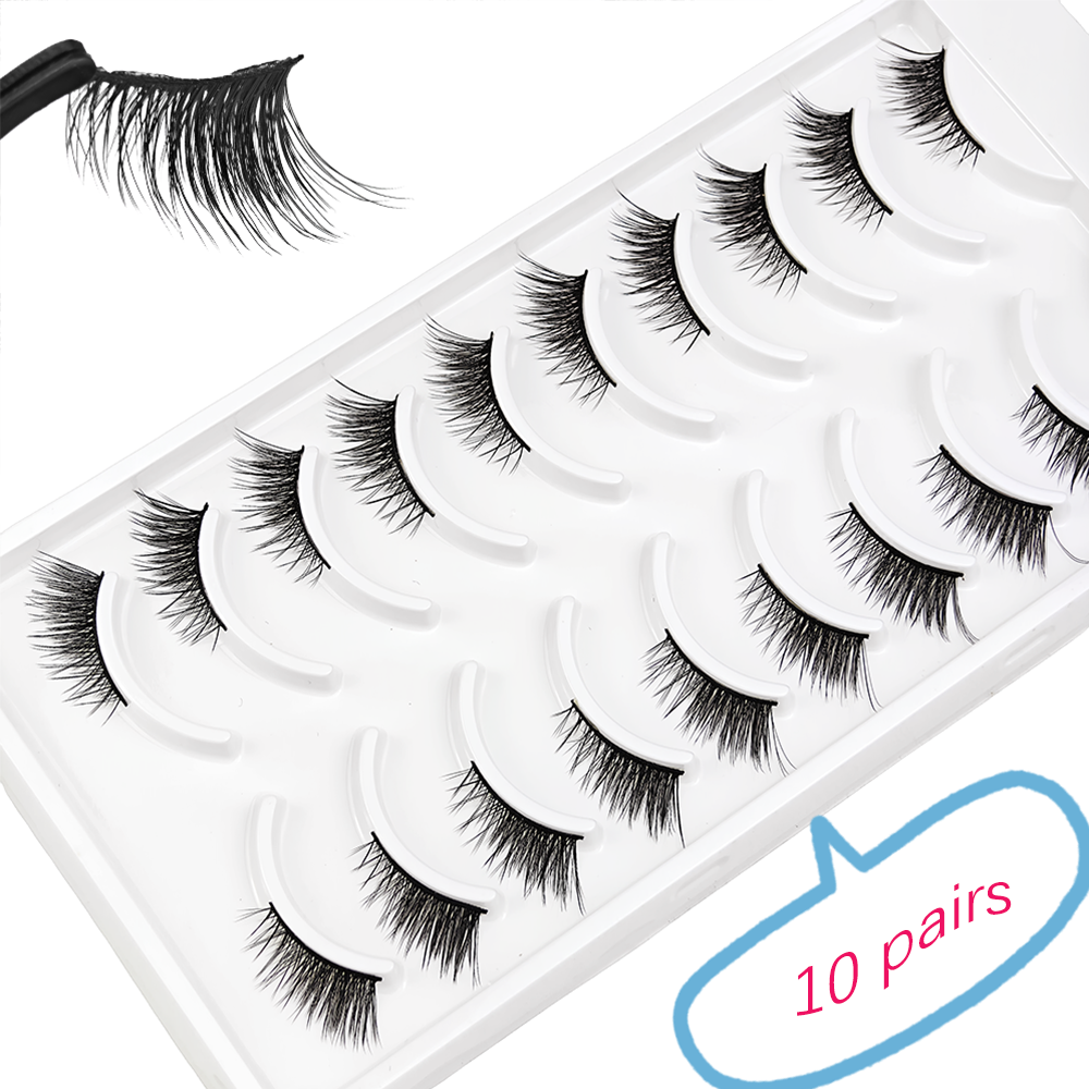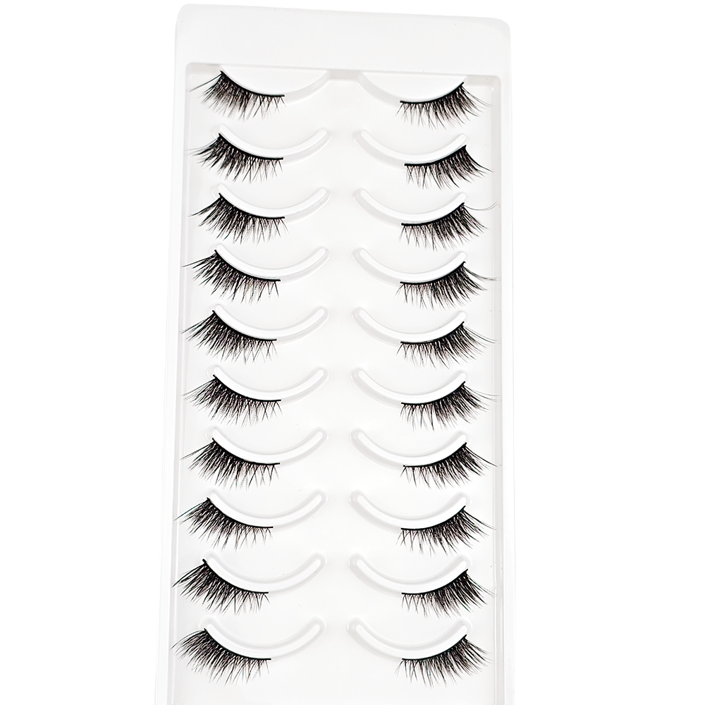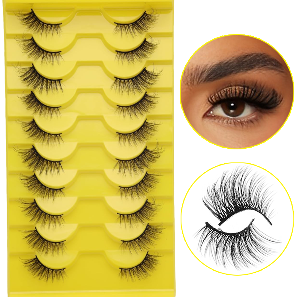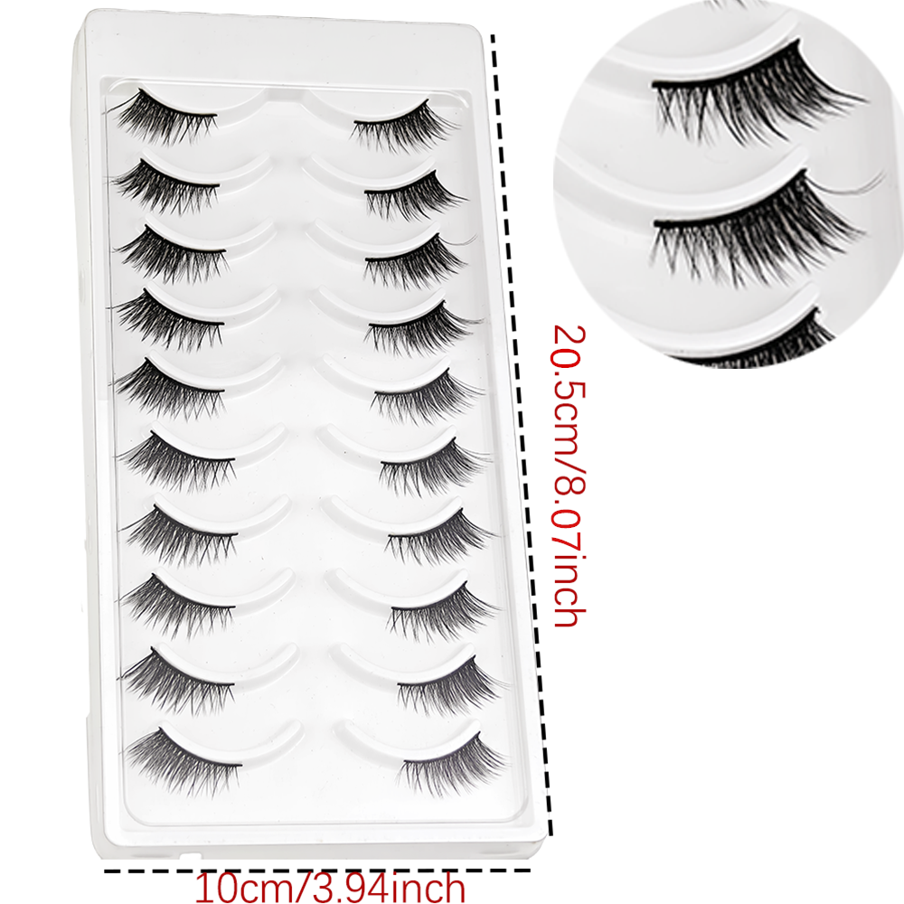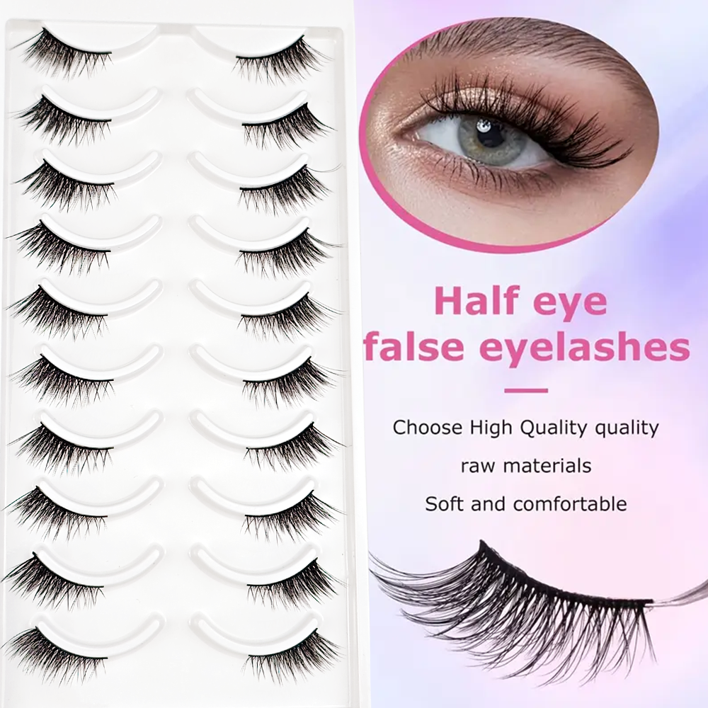 Cílios Postiços Meia-Cílios Premium - Efeito Fox-Eye Natural, Levantamento, Seda Sintética de Alta Qualidade,