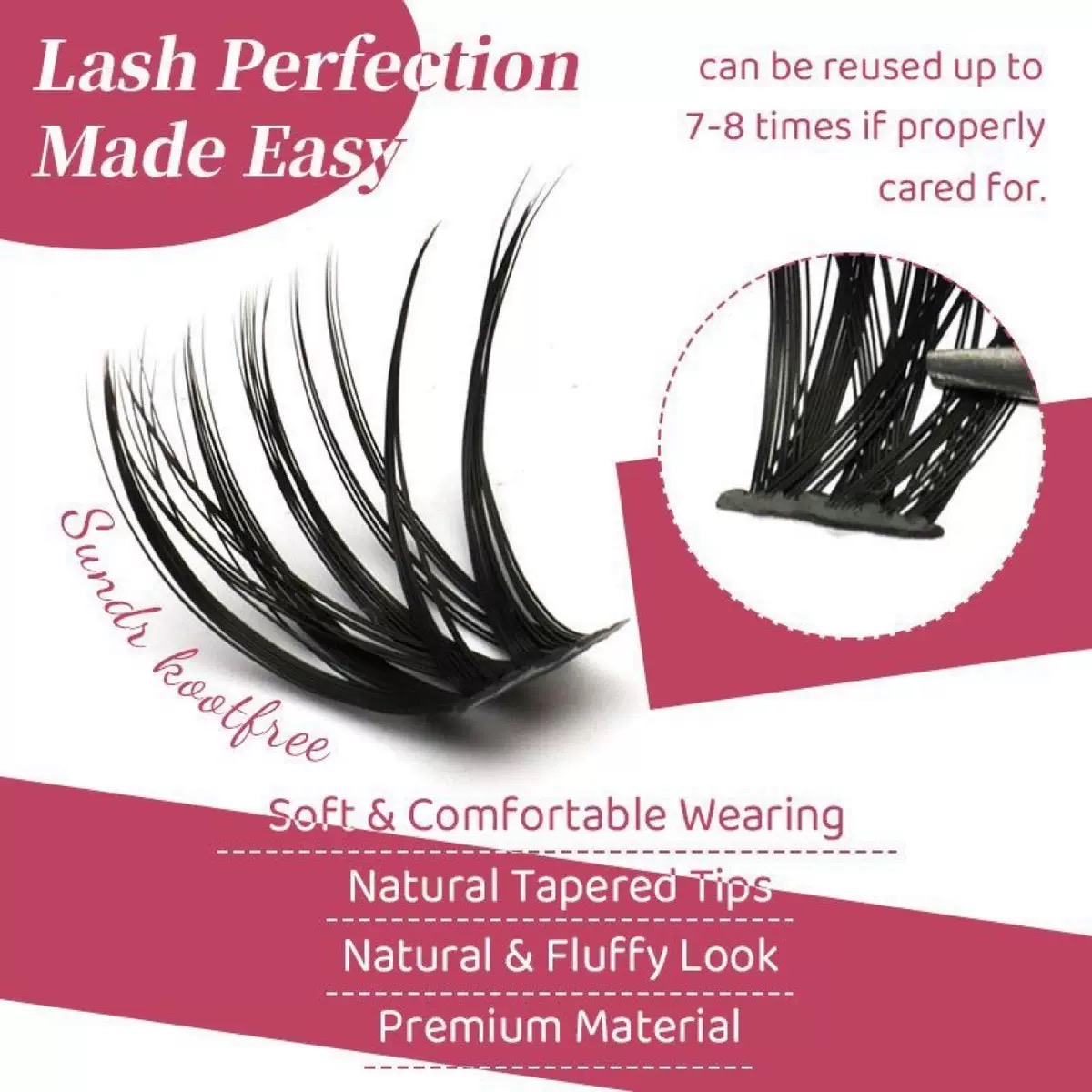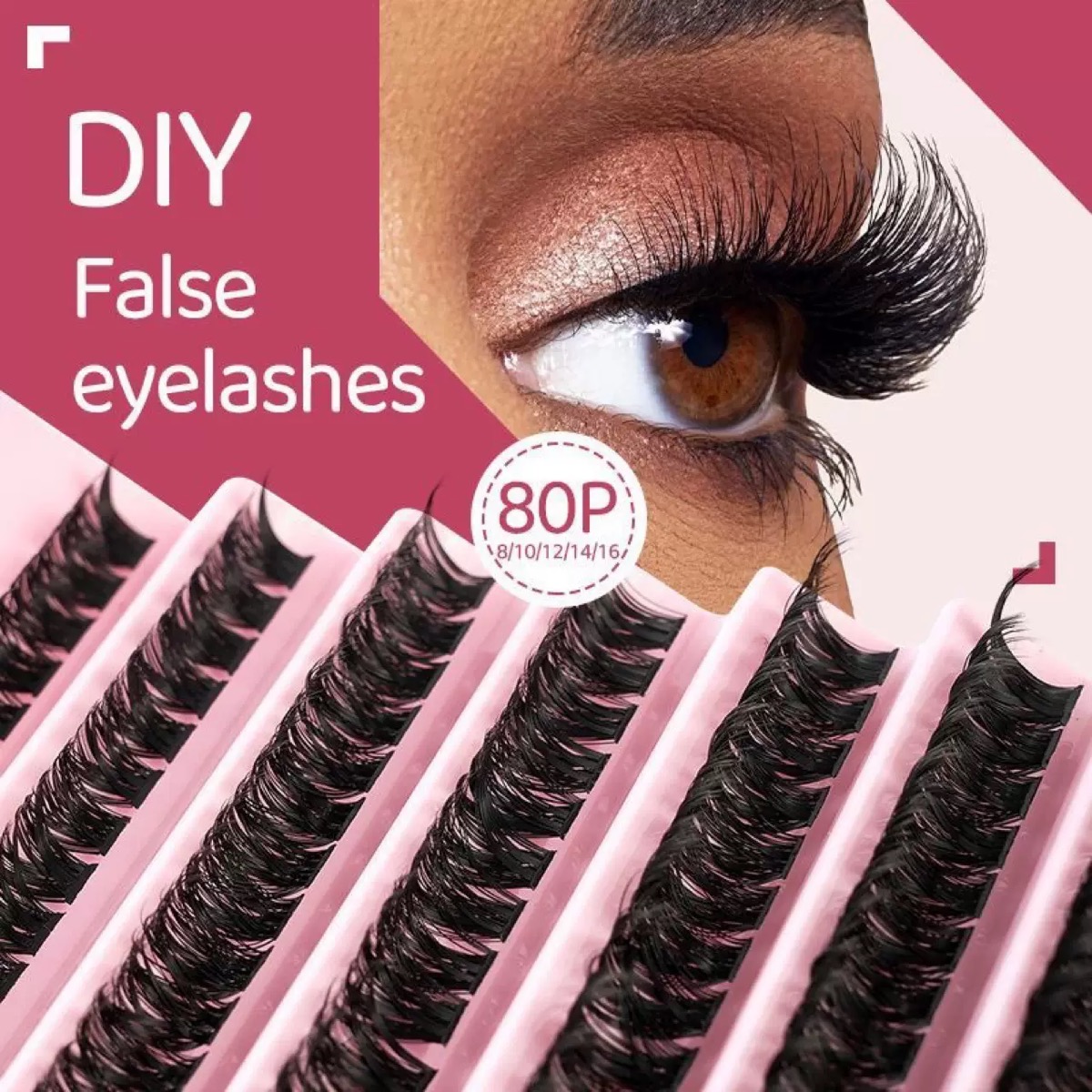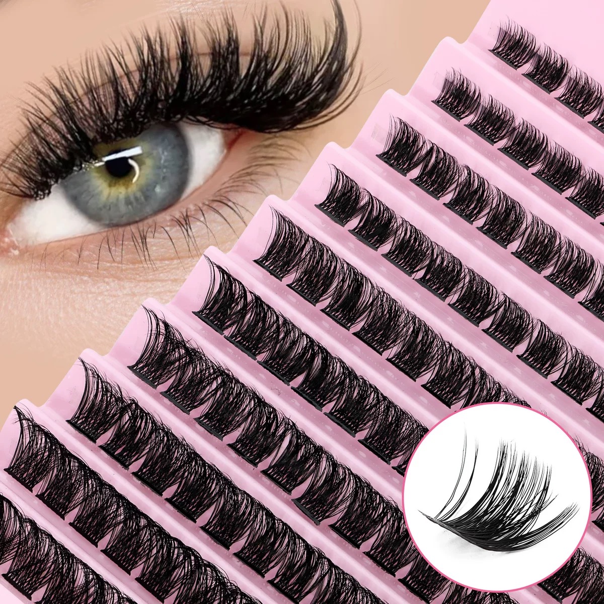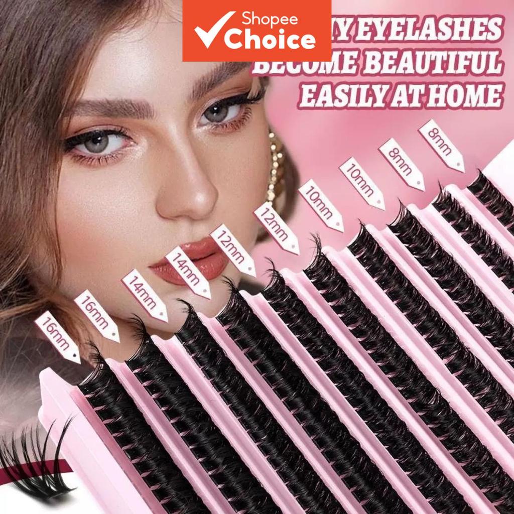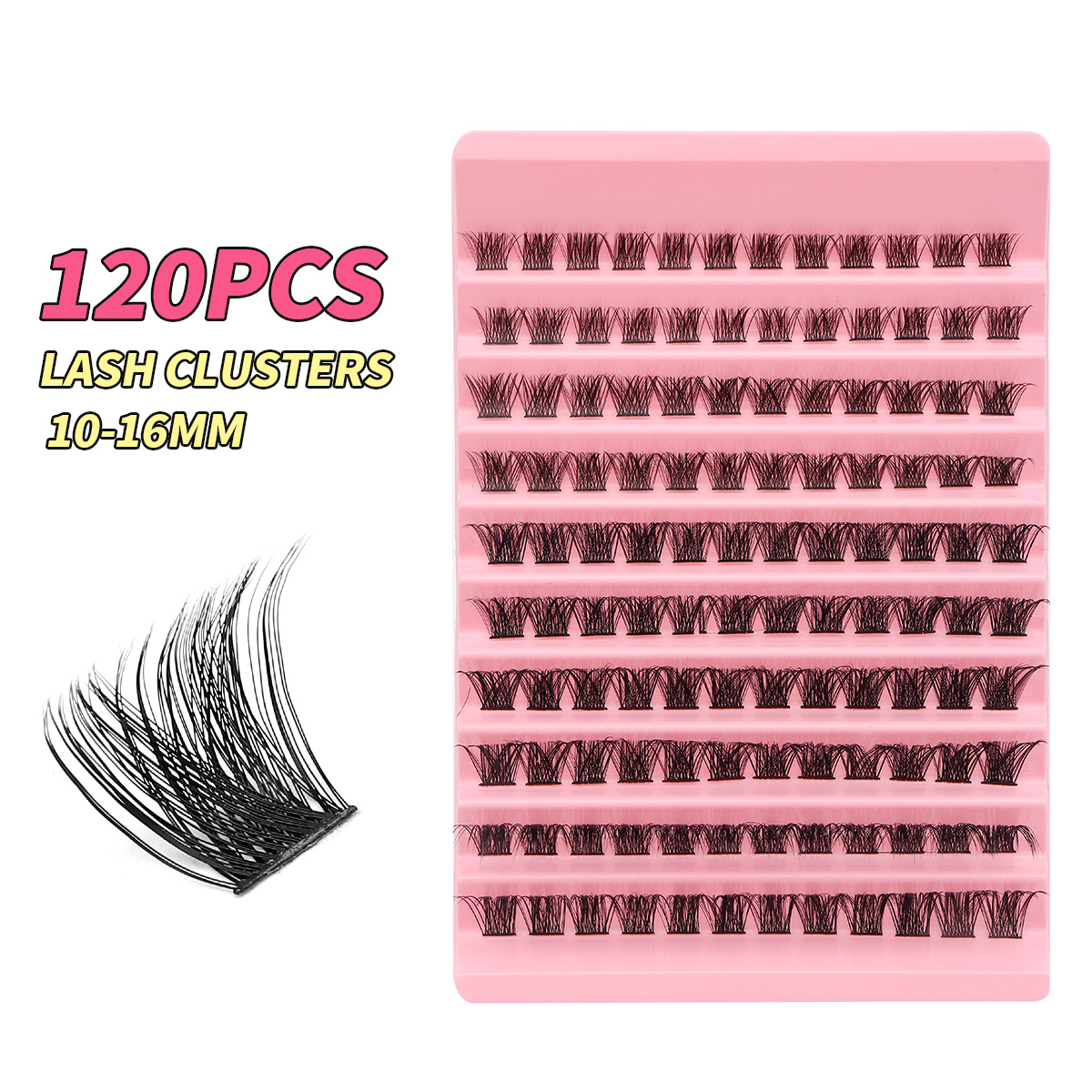 Cílios em tufos suaves, extensão 8-16 mm, volume natural, faixa fina e macia