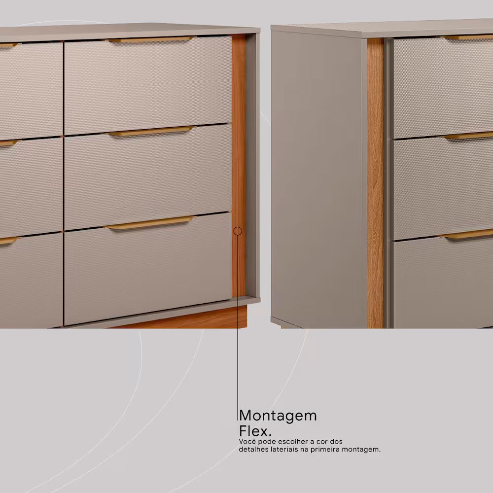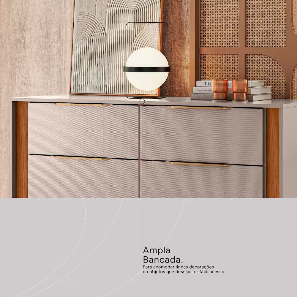 Cômoda 6 Gavetas Demóbile Giardino MDP Pintura UV Corrediças Telescópicas Puxadores ABS