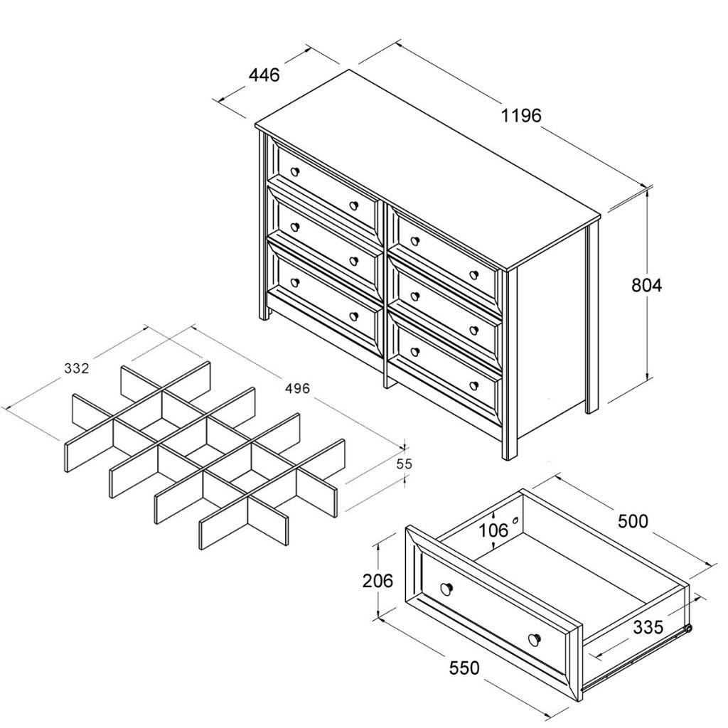 Cômoda 6 Gavetas com divisoria Ditália DM-217 Branco