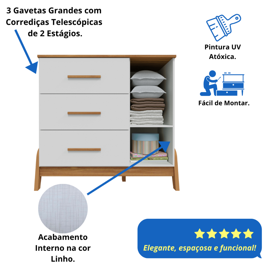 Cômoda De Bebê Infantil 1 Porta 100% MDF Anti-tombamento Arco Retrô