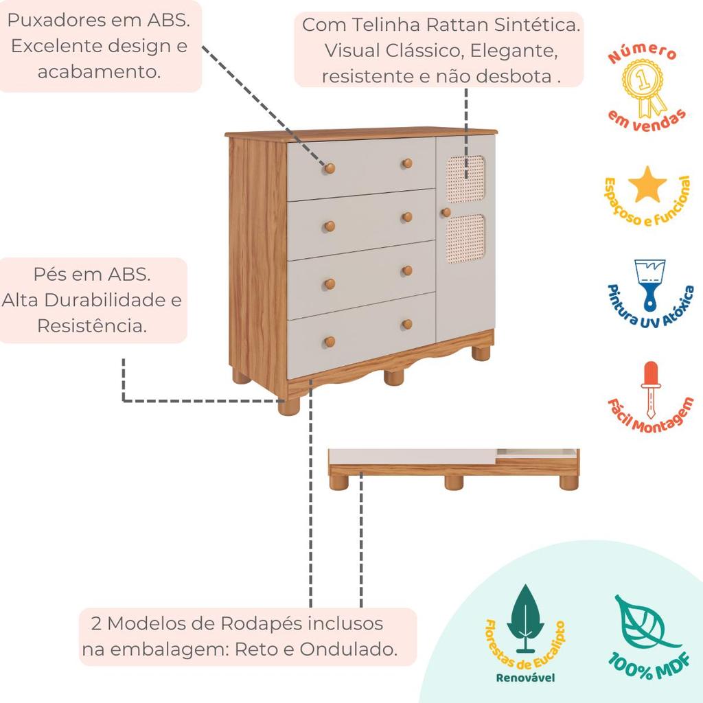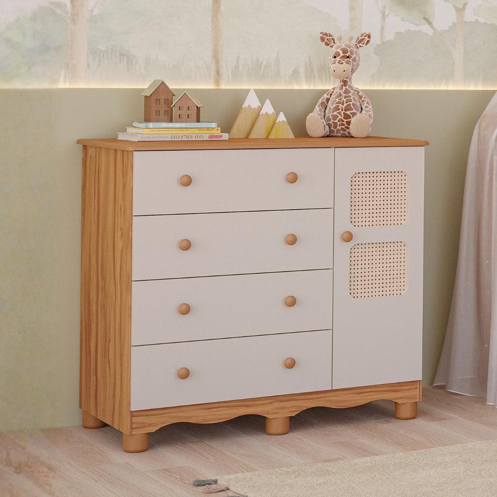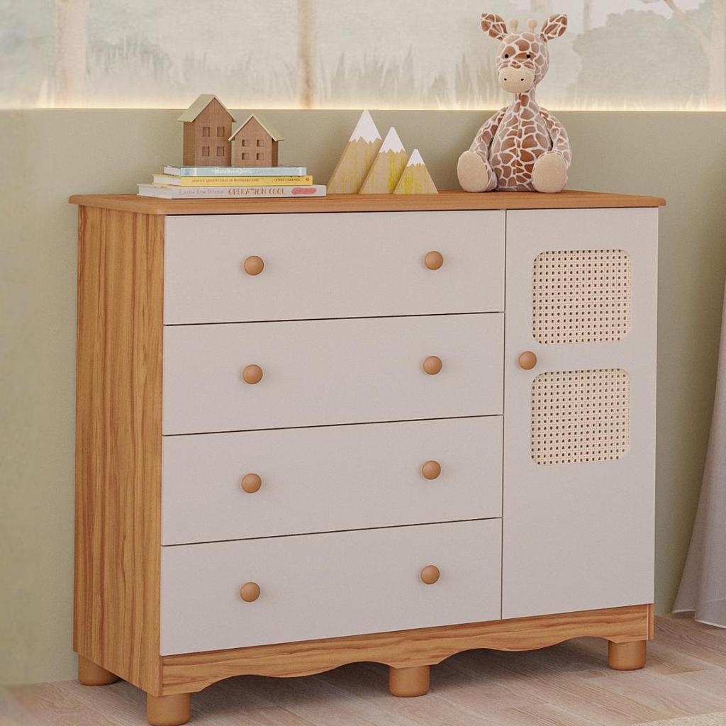Cômoda Infantil Telinha Off White 1 Porta 4 Gavetas 100% MDF