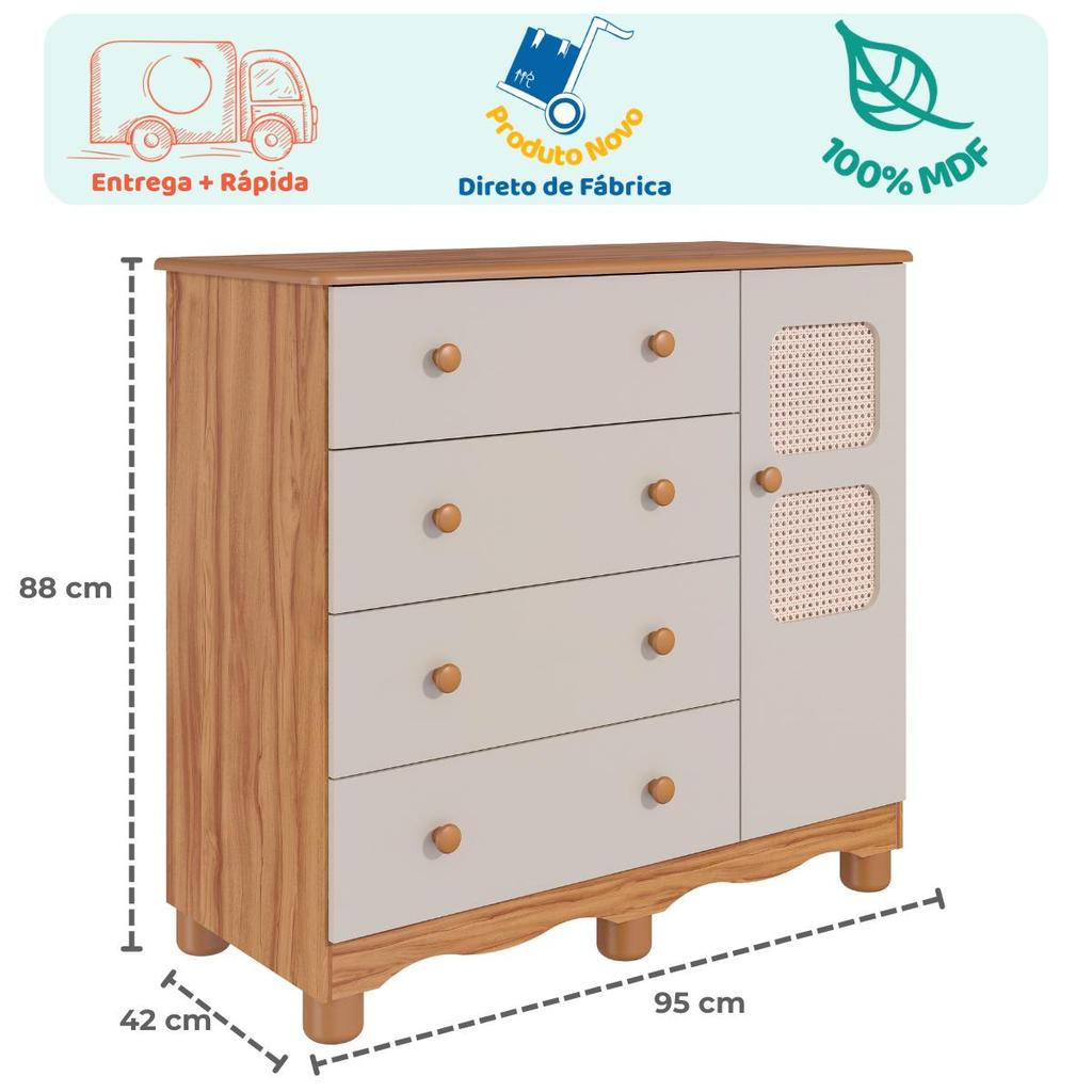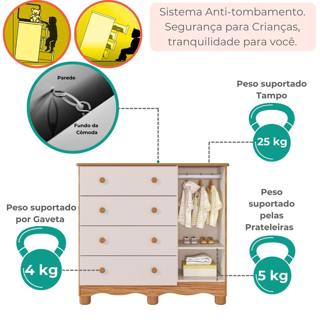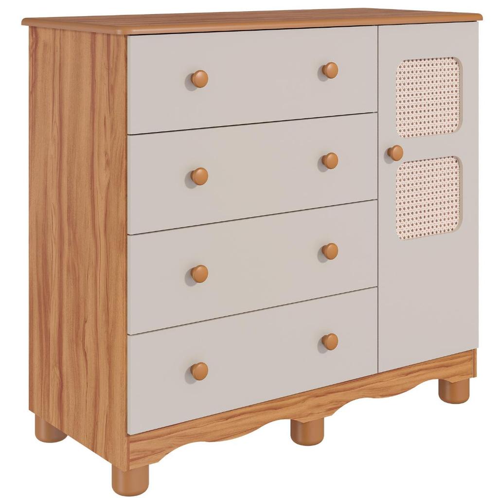 Cômoda Infantil Telinha Off White 1 Porta 4 Gavetas 100% MDF