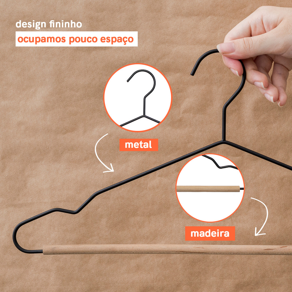 CABIDE FERREIRO COM BARRAS EM MADEIRA - OIKOS