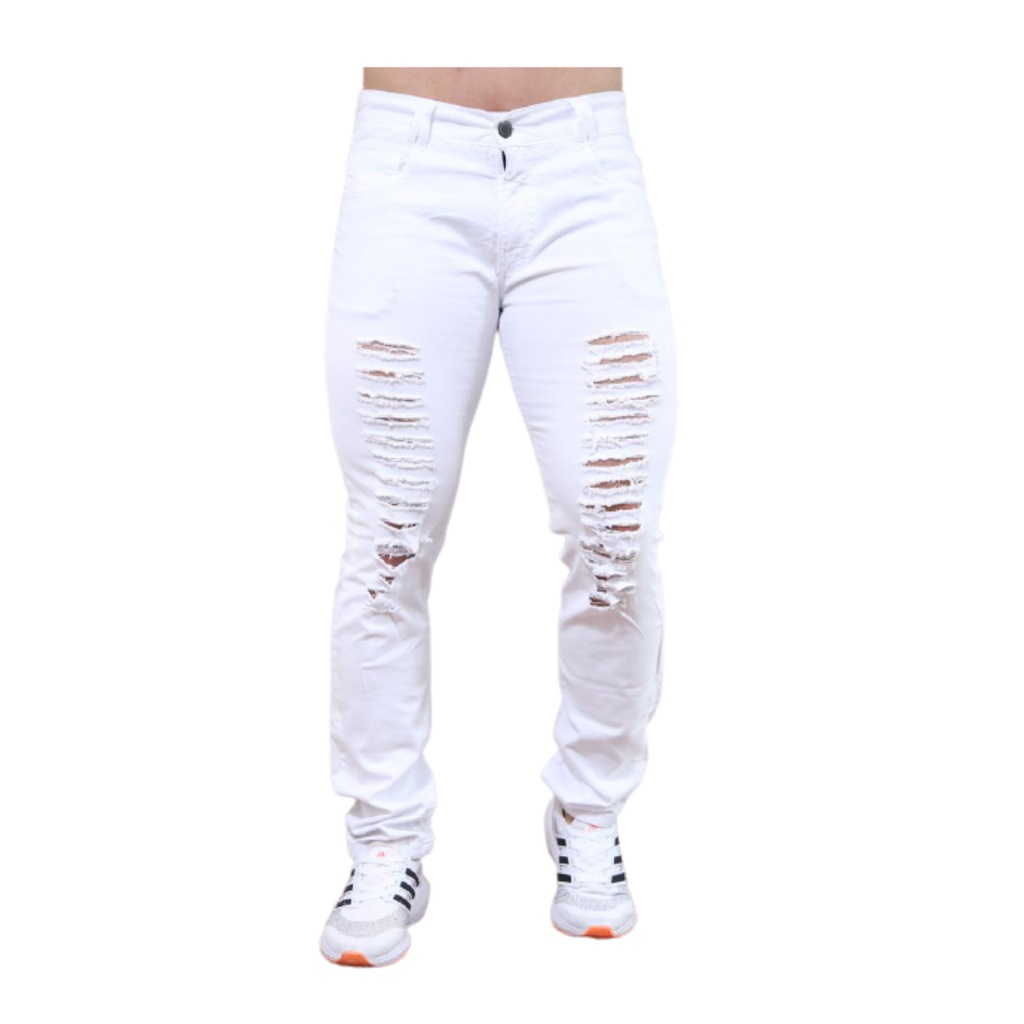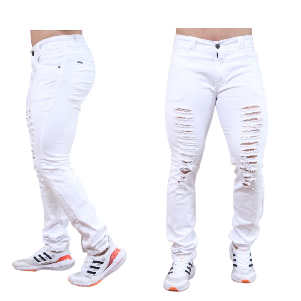 CALÇA BRANCA MASCULINA DESTROYED RASAGADA SKINNY