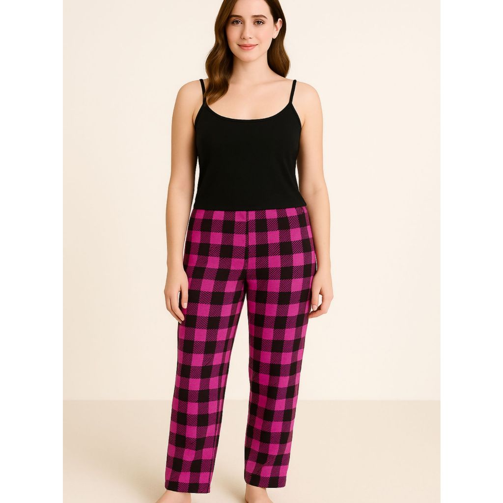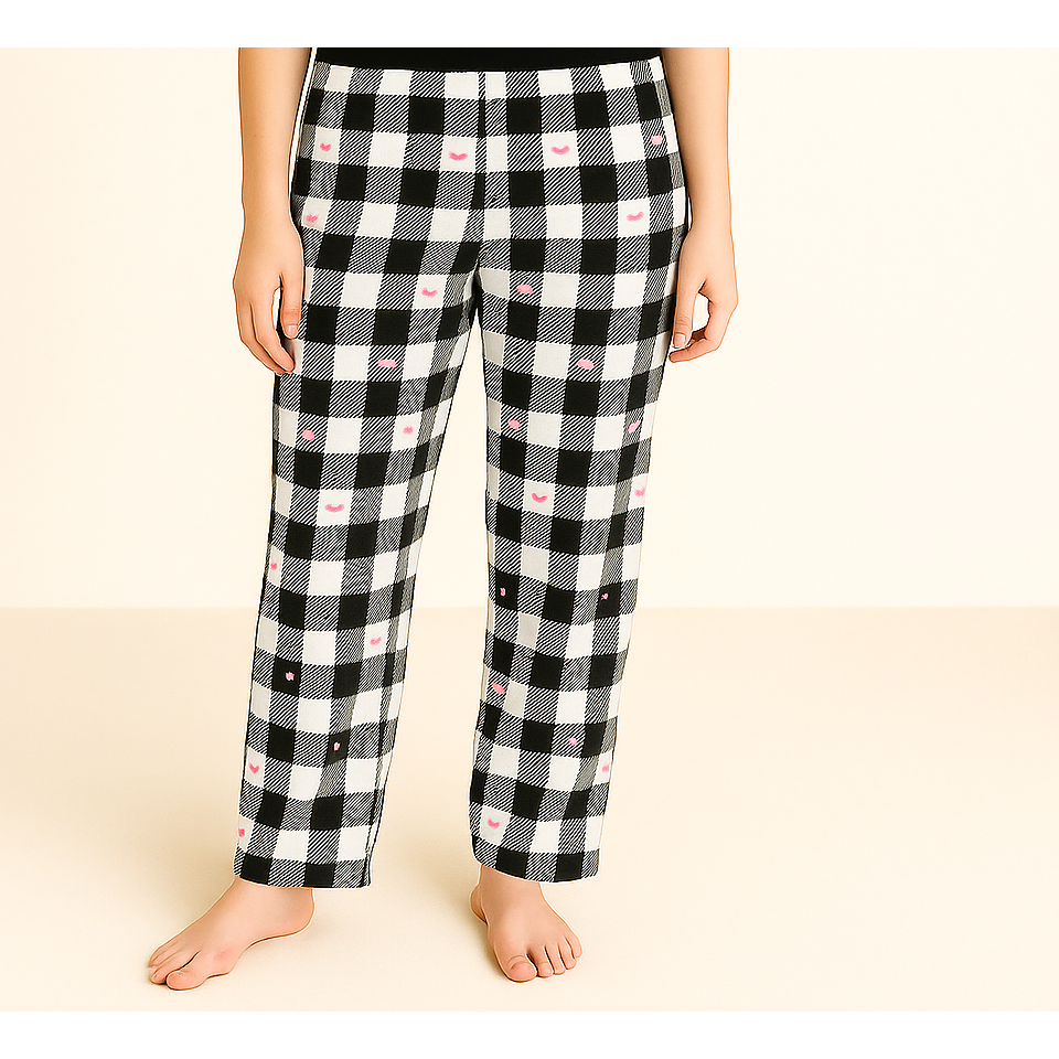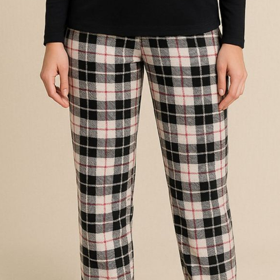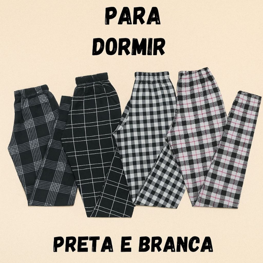CALÇA XADREZ PIJAMA PRETA E BRANCA TECIDO FINO POLIÉSTER FINO PARA DORMIR