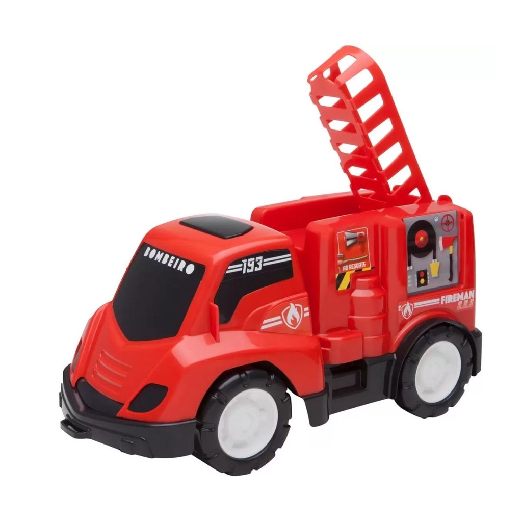 CAMINHAO BOMBEIRO INFANTIL SAMBA TOYS COM ESCADA DESLIZANTE