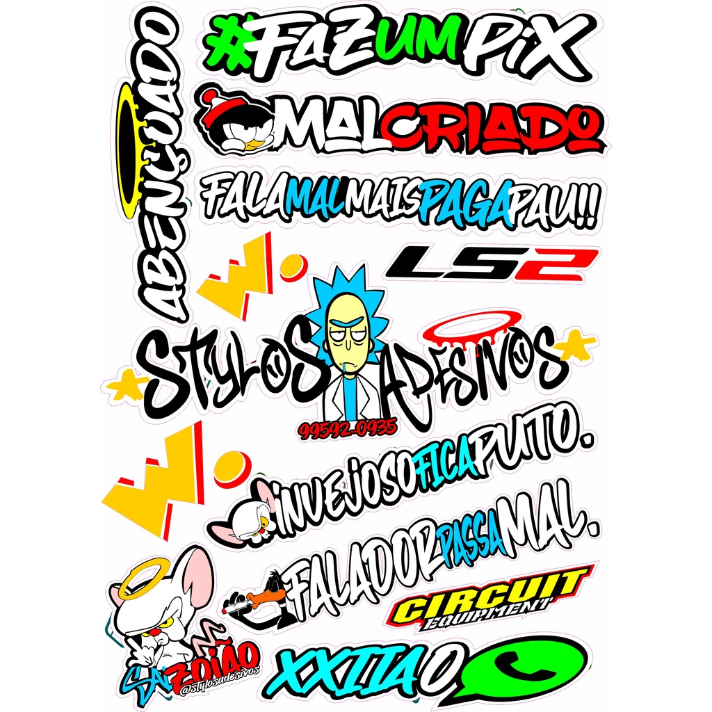 CARTELA DE ADESIVOS CARRO, MOTO, BIKE, SKATE.