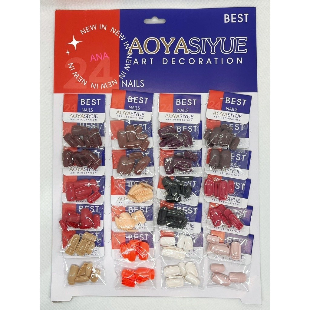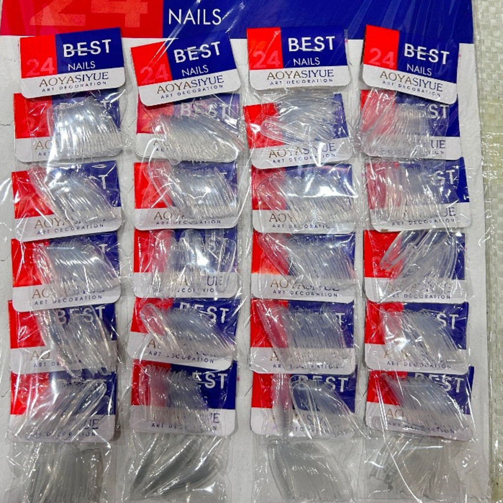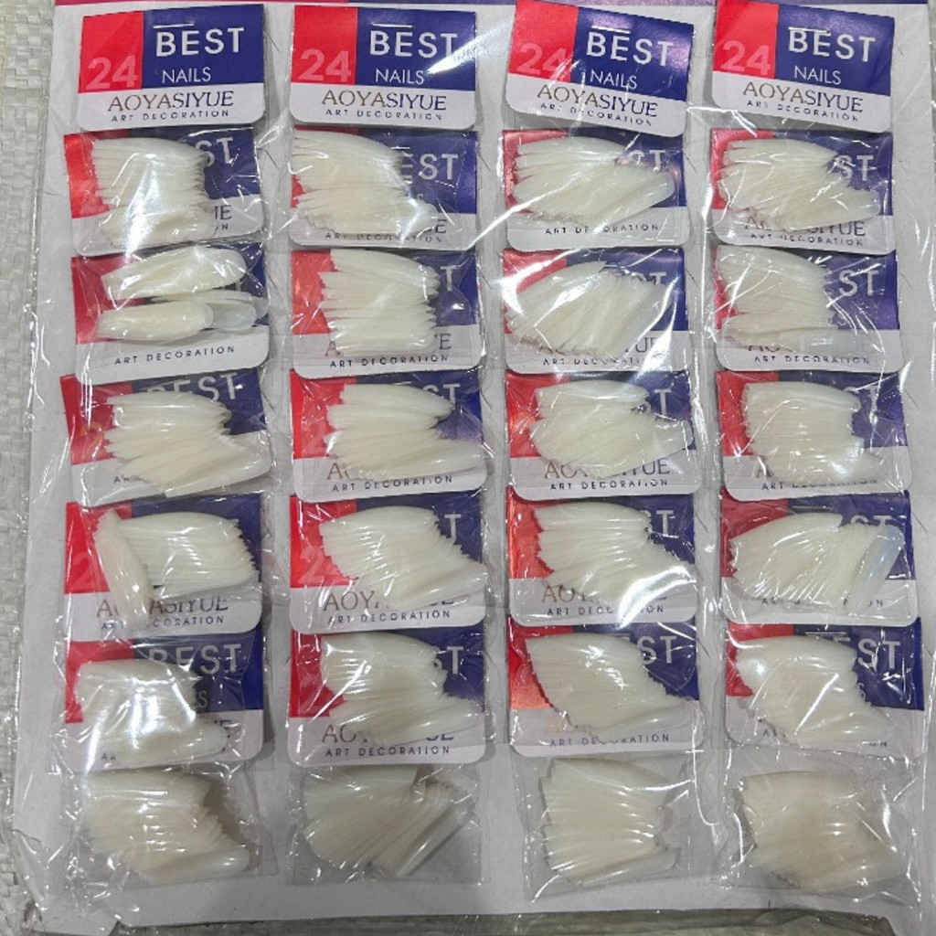 CARTELA GRANDE de Unhas Postiças Tips Quadrada Transparentes/Bege Cartela Com 24 Pacotes