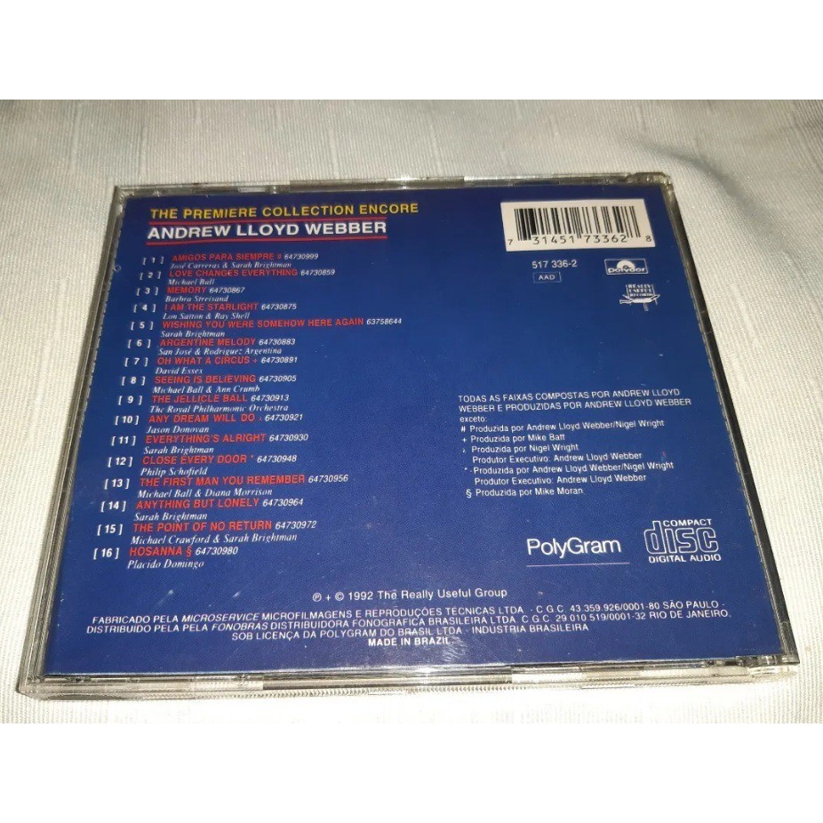 CD Andrew Lloyd Webber - The Premiere Collection Encore