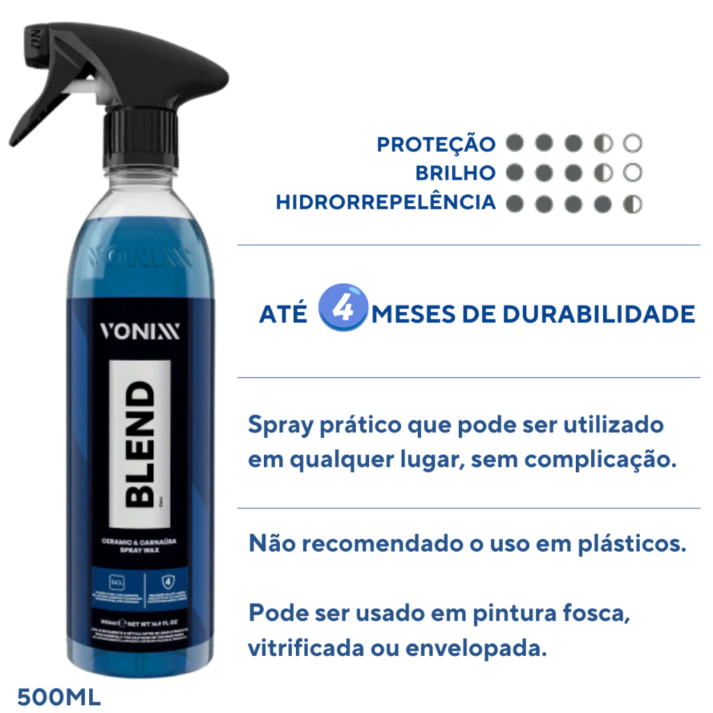 CERA SPRAY BLEND+SILICA 500ML VONIXX CERA CARNAÚBA AUTOMOTIVA PRONTO P USO
