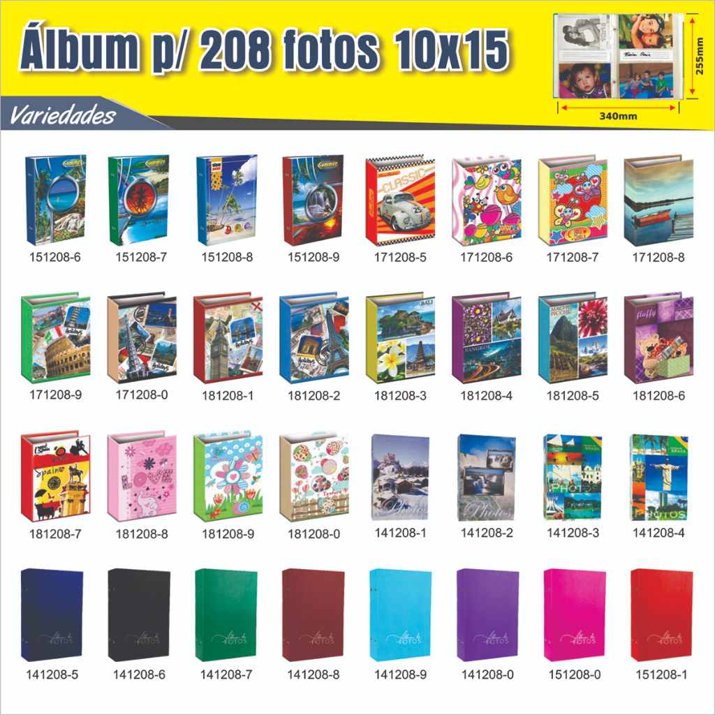 COMBO DE 2 ALBUNS DE FOTO 10X15/208 TOTAL 416 FOTOS LISOS OU PAISAGEM ESCOLHA SUA COR