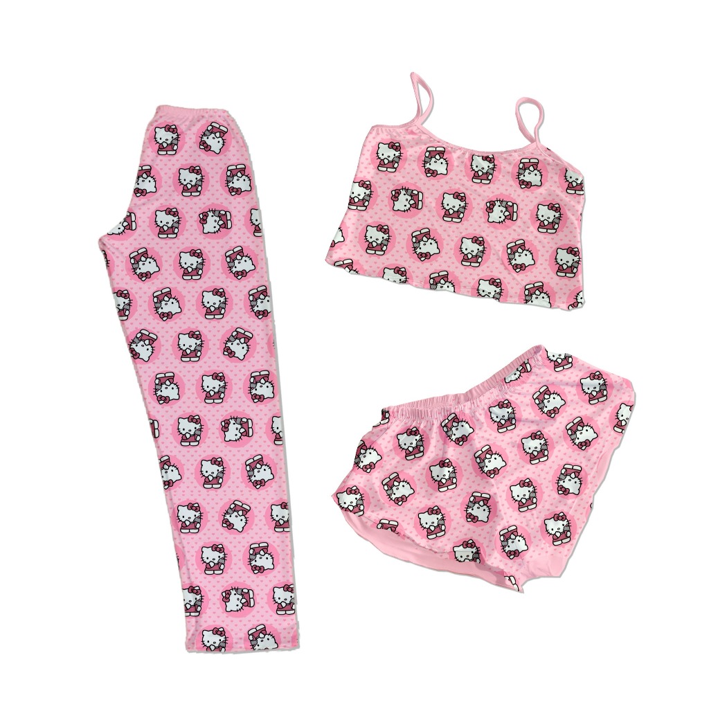 CONJUNTO PIJAMA 3 PEÇAS CALÇA SHORTS E CROPPED PERSONAGENS ROSINHA