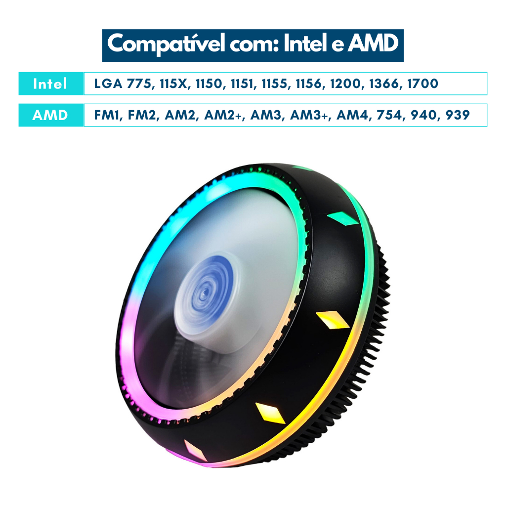 CPU Cooler Box Gamer Universal Rgb Processador Amd Ryzen AM4 AM5 Intel i3 i5 i7 LGA 1200, 1366, 1700