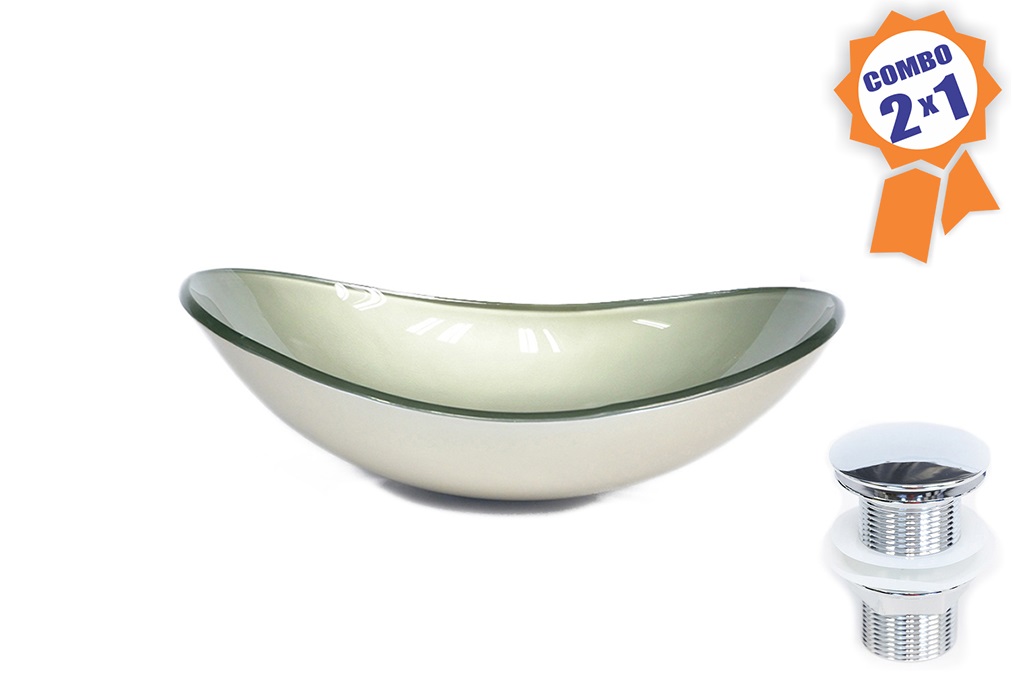 CUBA DE VIDRO OVAL 47CM CHAMPANHE + VÁLVULA CLICK