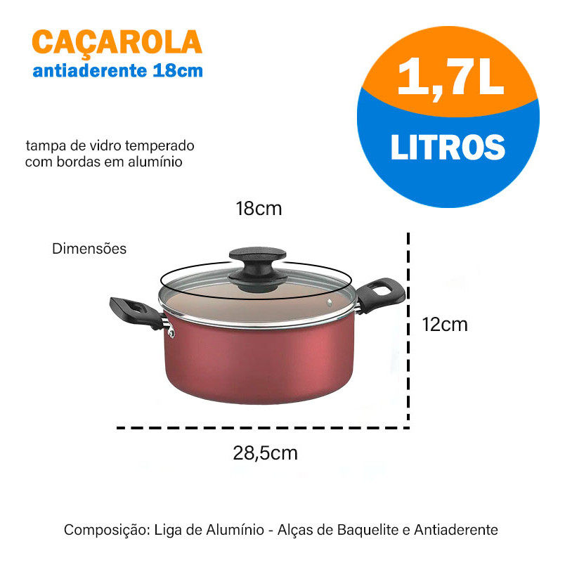 Caçarola 18 Cm Em Alumínio Com Antiaderente - 1,7 Litros